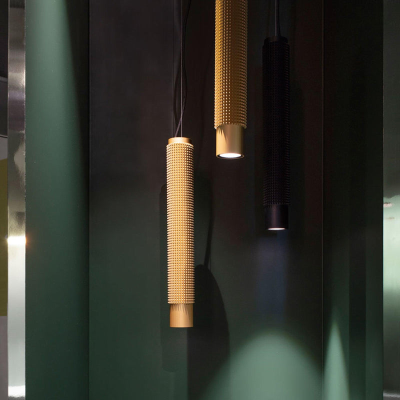 Step away from brave, alter yourself and dare to dare. This spiked design on the well-known Spy family breathes creativity and allows you to play with light and texture. This Punk design has been added within the existing range as a sleeve – for Spy with Ø62mm – or as a single luminaire, leaving you with the familiar optics but adding new experiences. To be able to integrate this experience throughout your project, new pendants and wall luminaires have been launched with Punk design. Available in Black, Gold Colored and Black Pure, a Black colored finish with pure aluminum topped spikes.