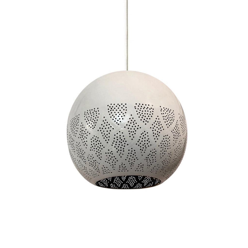 With its hand-shaped, hand-etched, and hand-pierced shade this unique piece is an instant show stopper. Inspired by the Darj W Ktef design dating back to the Almohad dynasty. The intricate hand-pierced Moroccan design casts exquisite shadows onto the space around it while providing a focused light at its base.