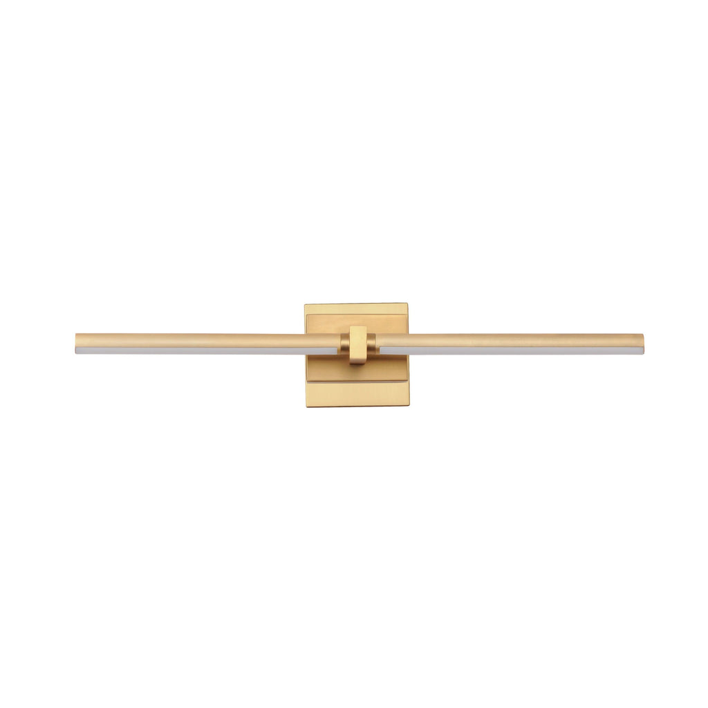A bold and timeless wall sconce collection, Dorian features a sleek square block support with two cylindrical LED light tubes that extend from it horizontally. These tubes are individually rotatable, allowing the user to position the LED light wherever needed. It is designed to mount to your choice of a single gang or standard junction box for use above portraits, shelves, pantries, or even as a bathroom vanity. Available in Matte Black or plated Gold, these sconces are handsome in design with timeless appeal.