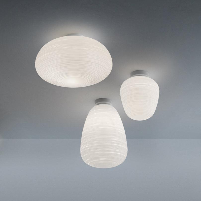 The Rituals ceiling lamps translate the luminous magic of Oriental rice paper lanterns into items of contemporary design, made of blown glass with special processing on the surface. The Rituals 2 ceiling lamp has an imposing presence, casting a warm, vibrant glow.