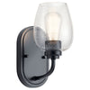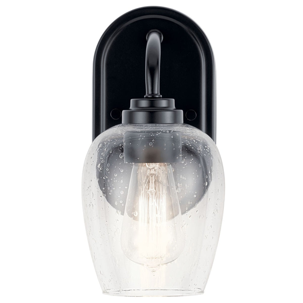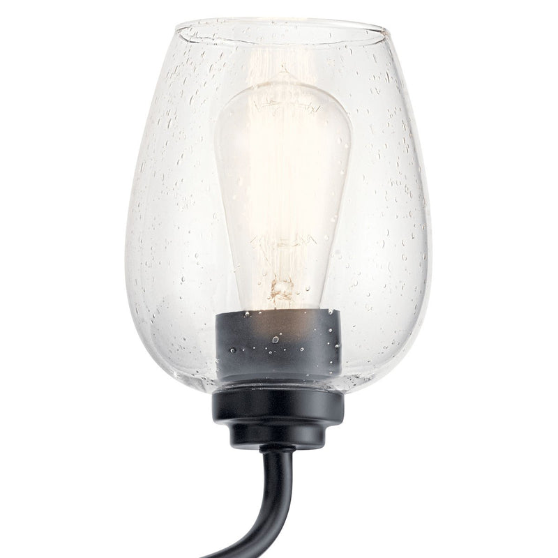 The Valserrano 10 inch 1 light wall sconce features wine goblet shaped clear seeded glass shades with a clean design in Brushed Nickel finish. A perfect addition in several aesthetic environments including transitional, traditional or farmhouse decor. Offers a classic design that works well with transitional, traditional or farmhouse décor. The clear seeded glass provides a beautiful, ambient lighting to the entire room.