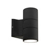 High powered LED exterior two light wall mount fixture, die-cast aluminum housing molded into a cylinder shape in powder coated gray or black finish. Concealed inside is 120V AC LED technology with a tempered glass diffusers radiating light upward and downward against the wall where installed. Certified ETL wet location listed and is available in different sizes and one light options