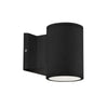 High powered LED exterior single light wall mount fixture, die-cast aluminum housing molded into a cylinder shape with in powder coated black or gray finishes. Concealed inside is our 120V AC LED technology with a tempered glass diffuser radiating light either upward or downward depending how it is mounted on the wall. Certified ETL wet location listed and is available in different sizes and two light options (see Lund family for details).