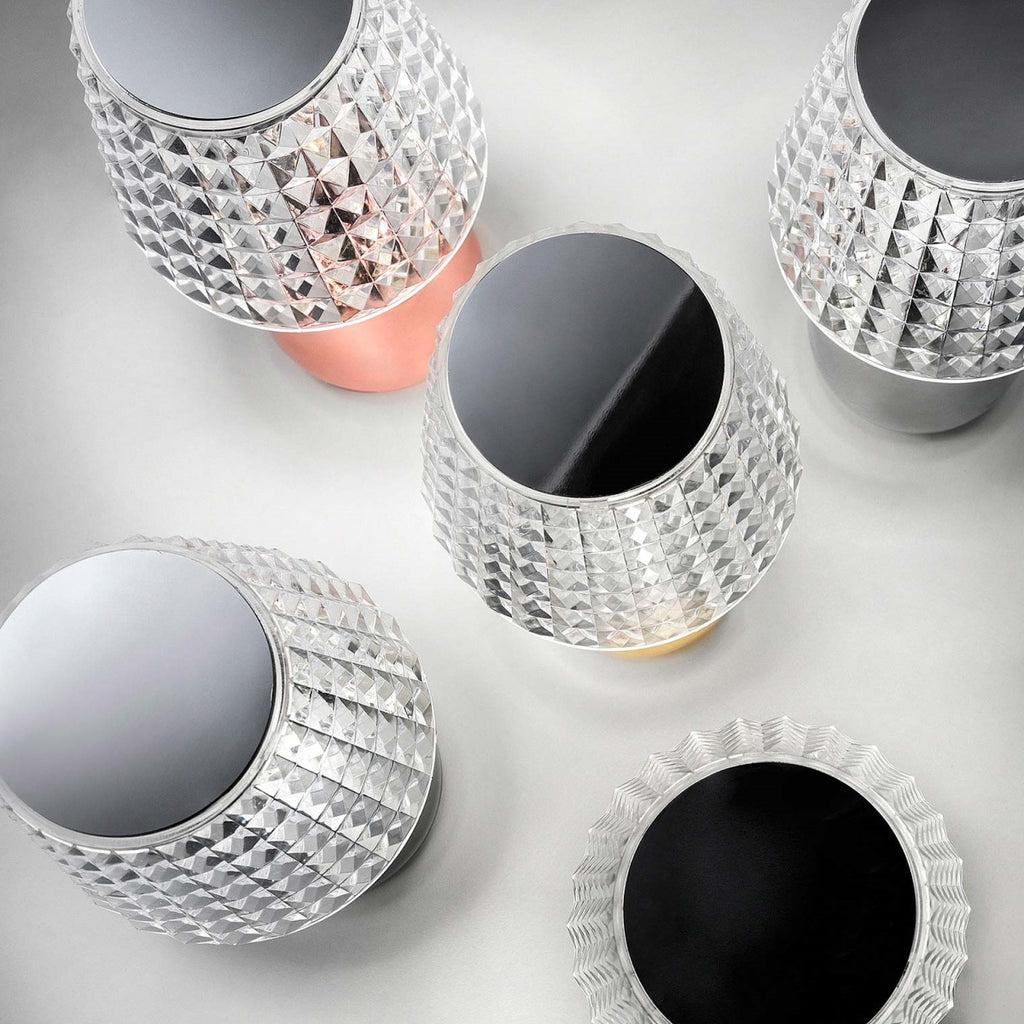 Add an ultra-stylish look to your space with Valentina Cordless Table Lamp by Studio Italia Design. This piece of contemporary lighting will enhance the modern appearance of your room. The lamp comes in polished white, polished black, polished chrome, polished gold, polished rose gold finishes. The luminous reflections generated by the prismatic diffuser are inspired by high fashion and create beautiful plays of light, making it a precious object, giving refinement to a unique and unmistakable collection. A versatile lamp that can be placed anywhere, whether it is a bedroom, living room, or even study.