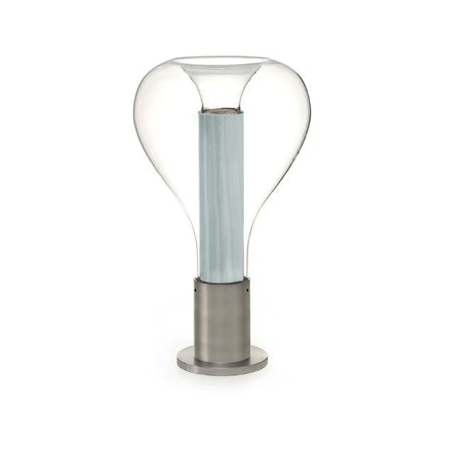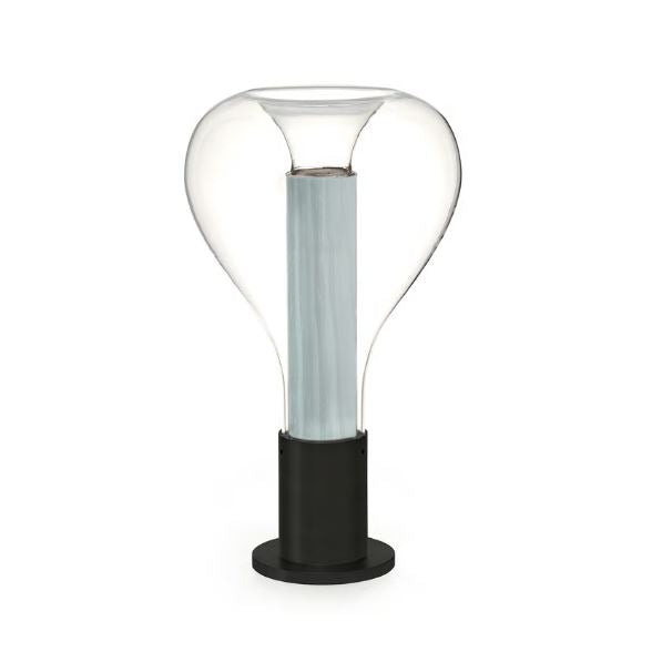 Ditch those boring table lamps and add a distinctive touch to the décor with this exceptionally beautiful Eris Table Lamp. Featuring an abstract pattern with an ethereal beauty, this table lamp comprises various components like an original borosilicate glass orb, a wood veneer tube with LED light and a sturdy metallic base. A classic table lamp is functional and ornamental at the same time. It offers a soft glow. This table lamp is available in multiple finishes and two metal finish options; aluminum and matt black.