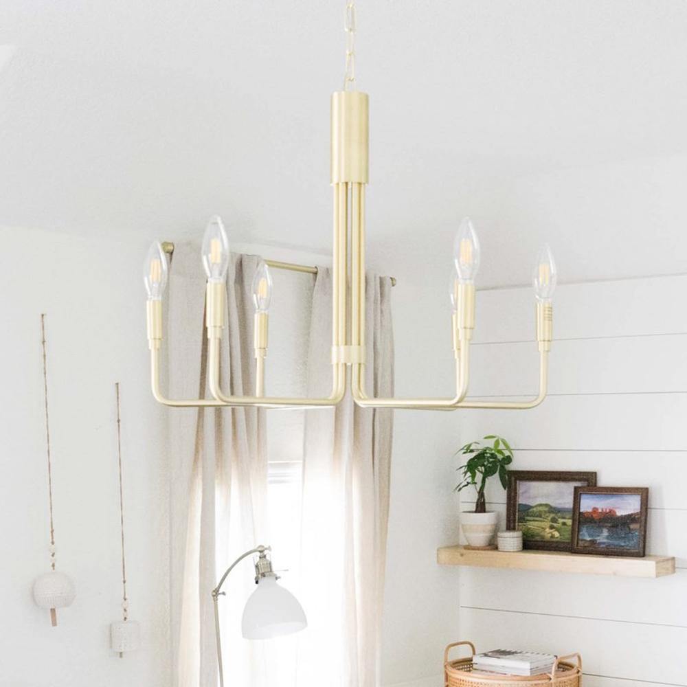 Illuminate the decor of your living room with this luxurious Brigitte Chandelier. This chandelier features a beautiful design. The lighting fixture can be easily mounted on ceiling walls to give your space a perfect finishing touch. It is available in 6-light and 10-light variants to give your room a soft and natural glow. You can choose from a wide range of finish options, such as aged brass, old bronze, and polished nickel to accentuate the decor of your living room.