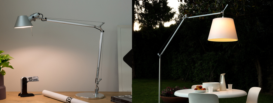 Tolomeo is an iconic lamp by Artemide, designed by Michele De Lucchi and Giancarlo Fassinam. The Tolomeo is made for fully adjustable direction of light, made possible with a spring mechanism. Each verison of the Tolomeo is simple and flexible, guaranteeing perfect stillness while also being able to be moved with one hand. As a modernization of the traditional arm lamp, the Tolomeo combines functionality, aesthetics, and sustainability, into one timeless design. Shop all versions of the Tolomeo here, from the classic desk lamp, to floor lamps, wall spots, suspensions, and outdoor lamps.