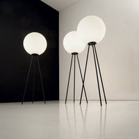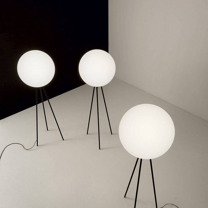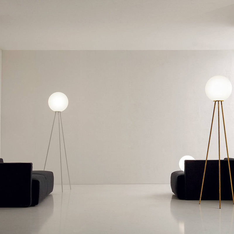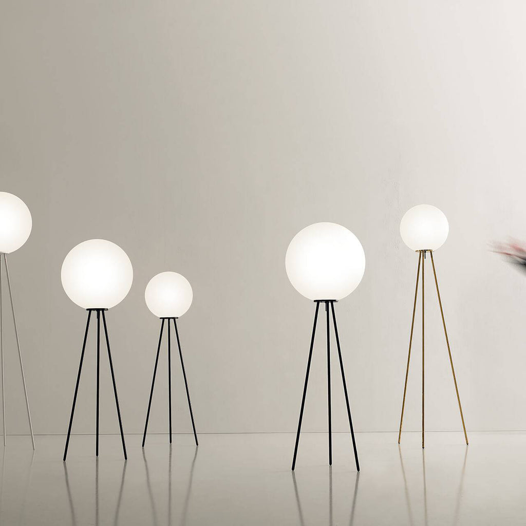 A floor lamp with minimal and modern lines, a trepiè that enhances the glass diffuser, a symbolic meaning that shows its functionality in the name itself. a timeless elegance that makes this floor lamp a perfect solution for different contests, both private and public.