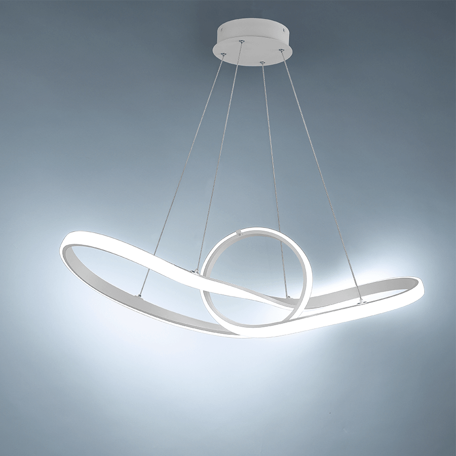 The Vornado dweLED Pendant by WAC Lighting creates a tranquil environment free flowing Mobius strip powered by an LED light source. It is a simple piece of lighting, which is handcrafted with precision and excellence. The LED’s hot spot is eliminated, and brightness is maximized by the silicon diffuser. You’ll not need an extra power cord for its suspension to the ceiling as it comes with four thin low-profile cables. The push-pin locking mechanism of the Vornado allows you to adjust it to a different length. It is available in the small, medium, and large sizes to suit different spaces of your interior. You can pick from the chrome and white finishes.
