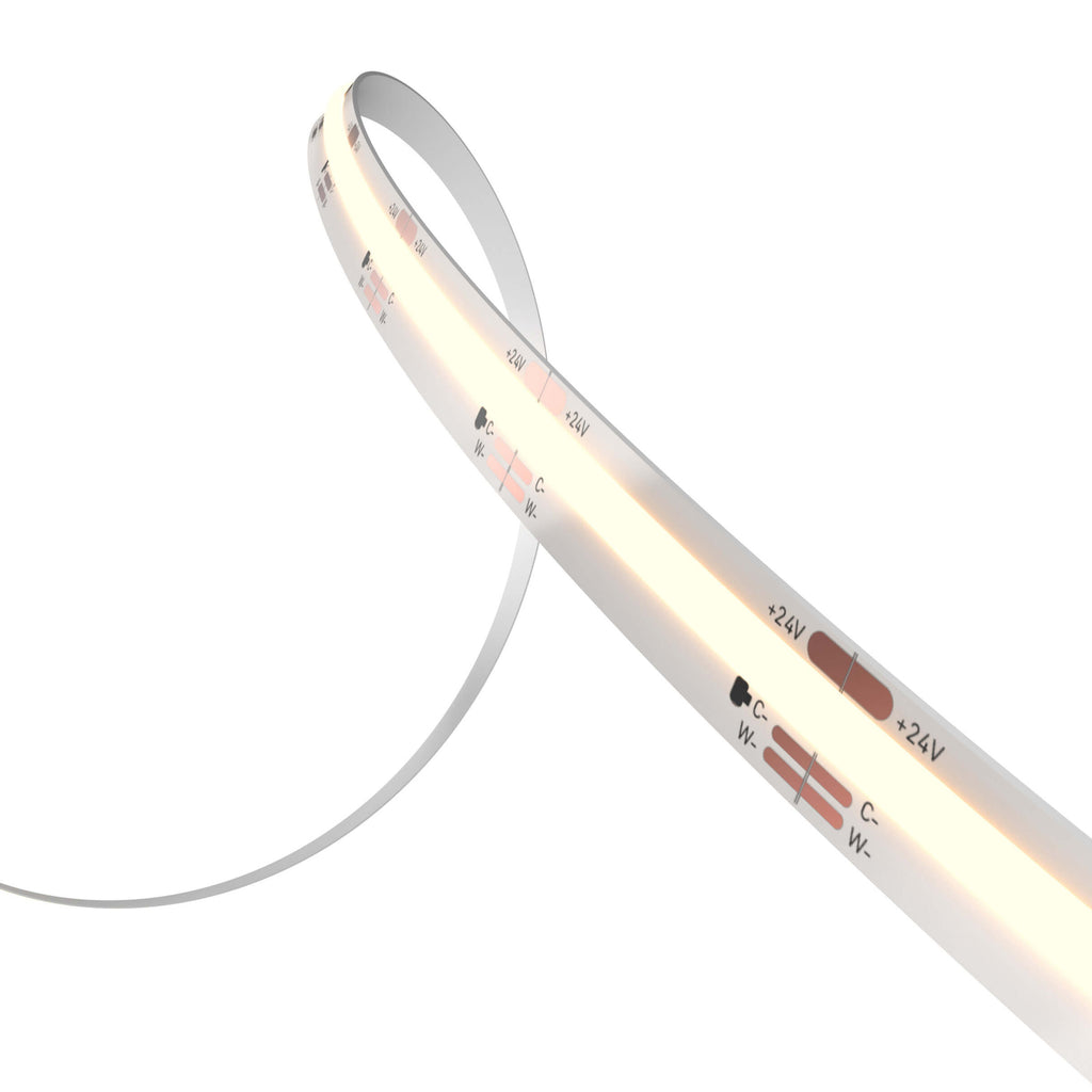 Our 24V COB tape light with 5CCT adjustability delivers a smooth, dot-free glow, five versatile color temperature options, and minimized voltage drop for consistent performance in any space or ambiance.