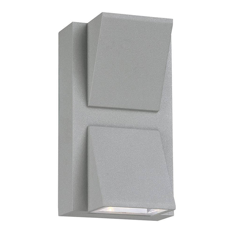 This 31582 6W LED Outdoor Wall Mount (VALLERO) by Eurofase will add a glow and texture to your outdoor walls. It features a clean design with a rectangular wall mount, having two angled structures that are fixed in upward and downward directions. These structures incorporate diffusers with LED lights at the bottom and the yellowish light forms tapered shapes on the walls. The brand presents this classic light in two different finishes- graphite grey and marine grey to choose from.