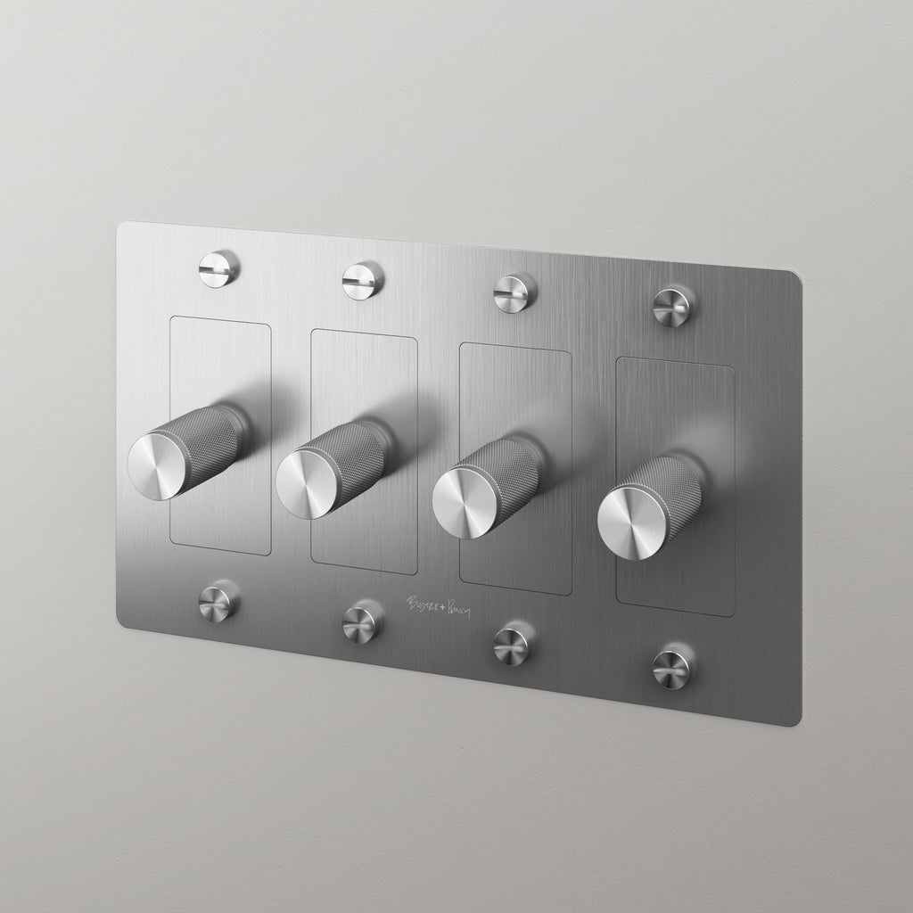 Buster + Punch started out in a garage in east London, building custom motorbikes. Founder Massimo Buster Minale made all the parts from scratch, which soon turned into requests for home fittings. From door handles to lighting, Buster + Punch's mission is to reinvent forgotten home fittings into the unforgettable. Working with rare, solid materials, this company is constantly creating innovative collections inspired by London's fashion, music, and subculture scenes. Collaborating with street artists, bike builders, and fashion designers, personality is injected into each crafted product.4G Dimmer