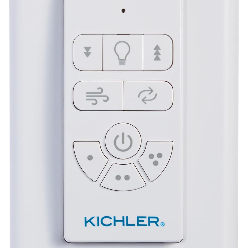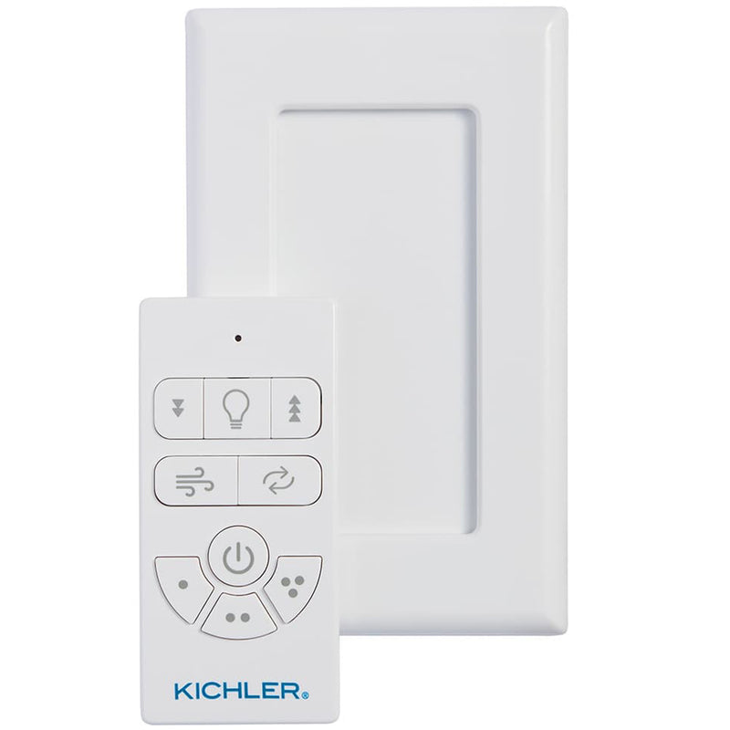 Featuring a slim profile and modern design, the AC Standard Full Function Handheld Remote Control is easy to install and can be paired with most AC fans. This handheld remote control offers 3-fan speeds, breeze mode and the ability to adjust the light from full room glow to a relaxing dim. This remote also features a reverse button so you can change the direction of the ceiling fan rotation to help cool your home during the warmer months or warm it up during the colder months. Plus, its magnetic hold makes it easy to use and store. Perfect for upgrading Kichler AC motor ceiling fans or comparable AC motor fans throughout the home Featuring a modern, slim design, updated button layout and timeless aesthetic Breeze mode recreates a natural outdoor breeze by varying the fan speeds through all 3 settings Adjust fan speed and light output all from your handheld remote Dimming control allows you to adjust your fan light based on your lighting needs throughout the day, so you can turn the lights up when you are in work mode or dim the lights down when it's time to relax Easy remote installation, the backplate installs to the wall with two screws, so no need for cutting holes in the wall or running electrical through to the fan Transmitter attaches to the wall mounted back plate through a magnetic hold, allowing for very easy use Full function transmitter has a button to reverse the fan direction, allowing you to change the direction of the ceiling fan rotation from the remote rather than flipping a switch on the fan.