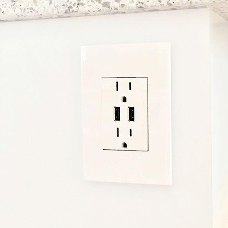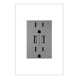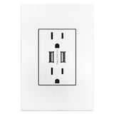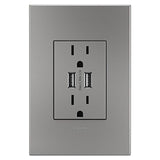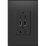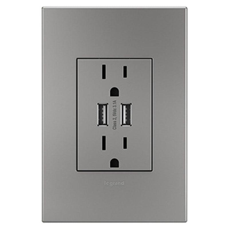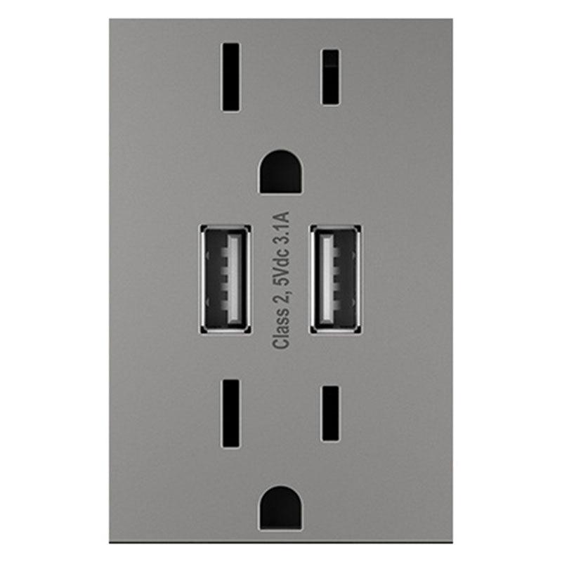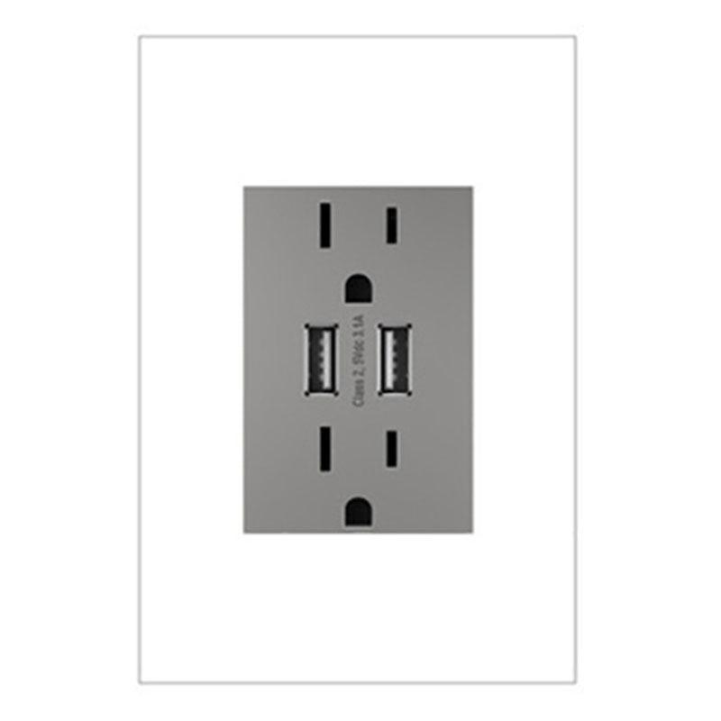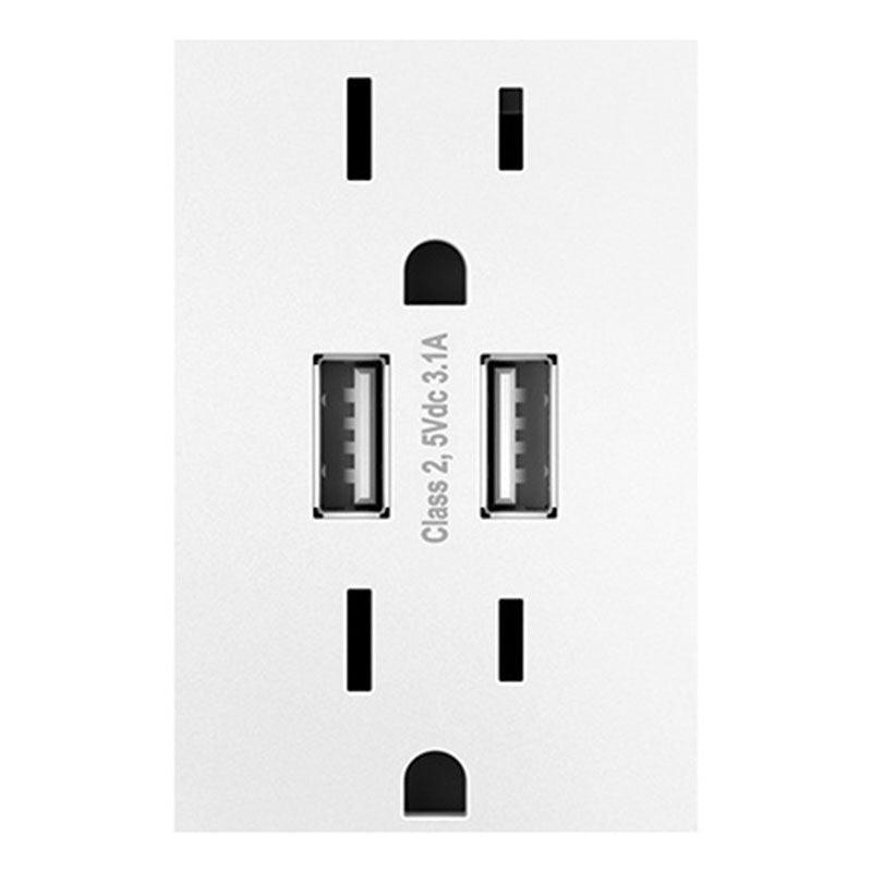Plug your charger anywhere with this Dual-USB Outlet by Legrand Adorne that features a combination of type-b CFGI outlet and seamless electrical fixture idea. This temper resistant white power outlet is easy to install and requires no new wires or any other type of complex installation. The USB slot enhances its functionality and allows 3.1A of charging capacity. The versatility of this modern design CFGI outlet delivers an easy and convenient way to plug more than one device at a type or a combination of receptacles and USBs. Requires Adorne wall plate, sold separately.