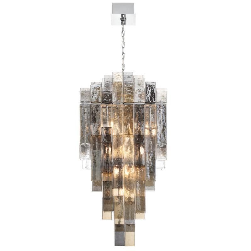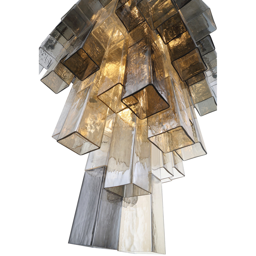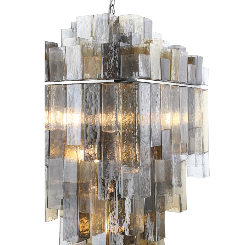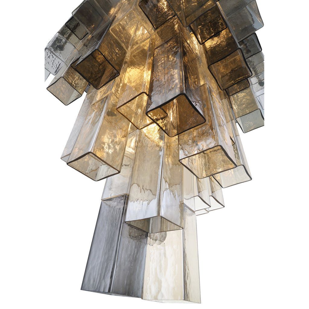 A series of stepped square balusters are the backbone of a staircase; adding grace and strength to a functional element in a building. Using this same tiered visual, Altesa dresses square frames with elongated square tubes of glass. The varying lengths, tones and densities of glass influence the depth and color of light, presenting a mesmerizing display in grand proportions.