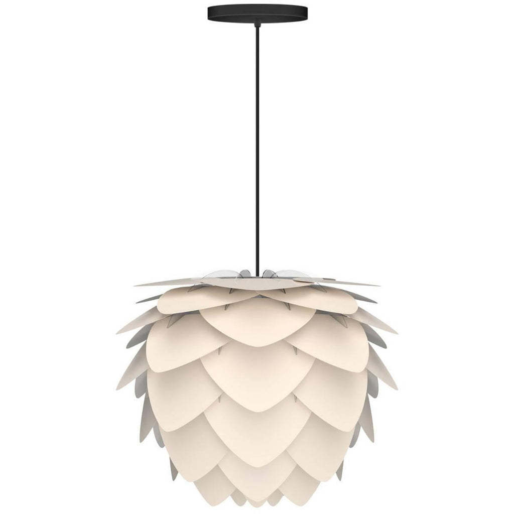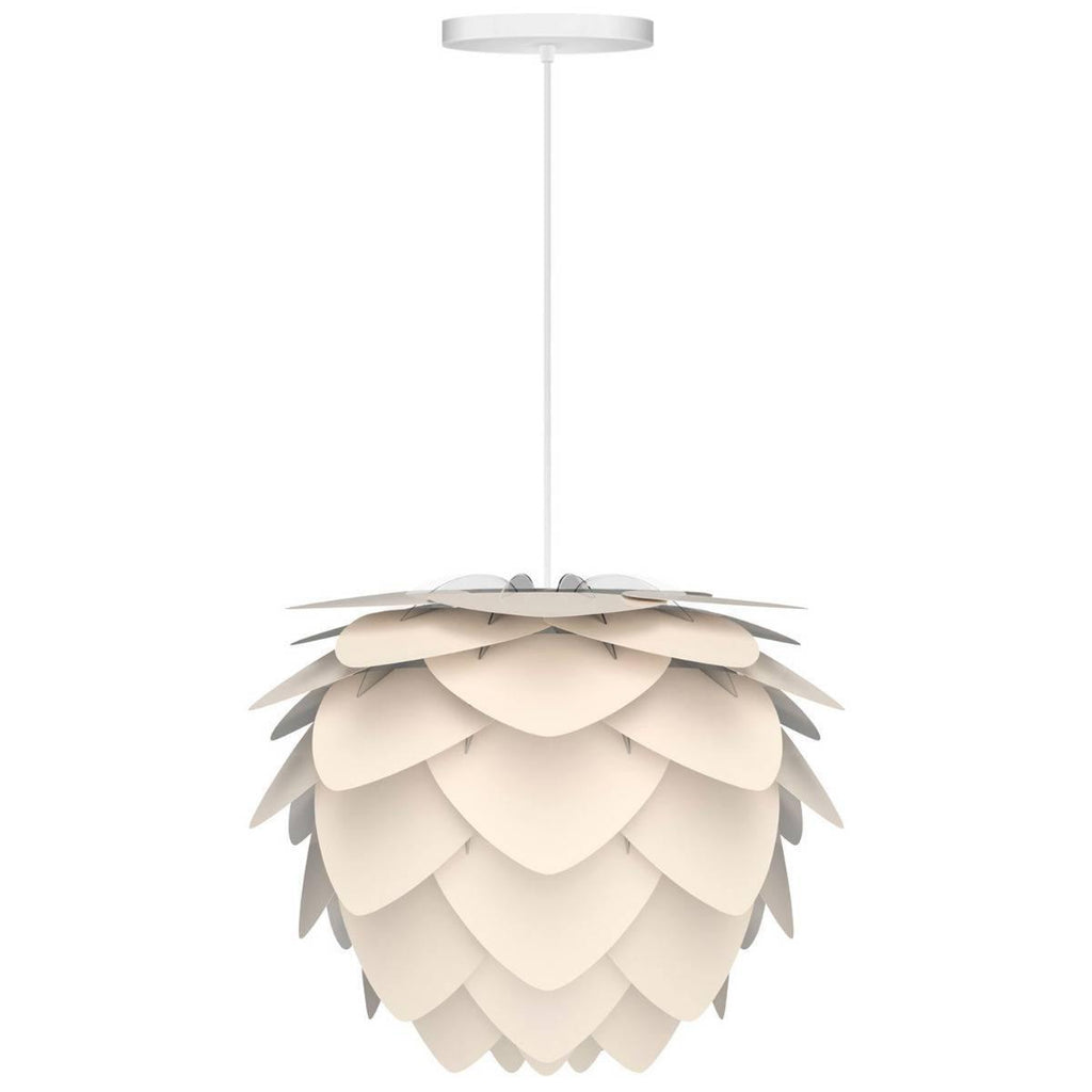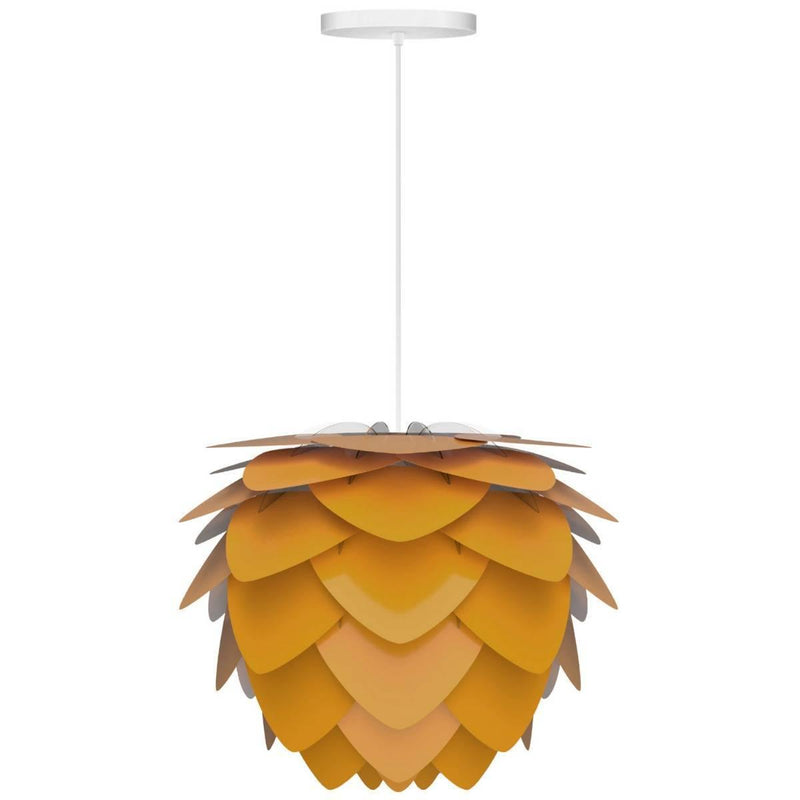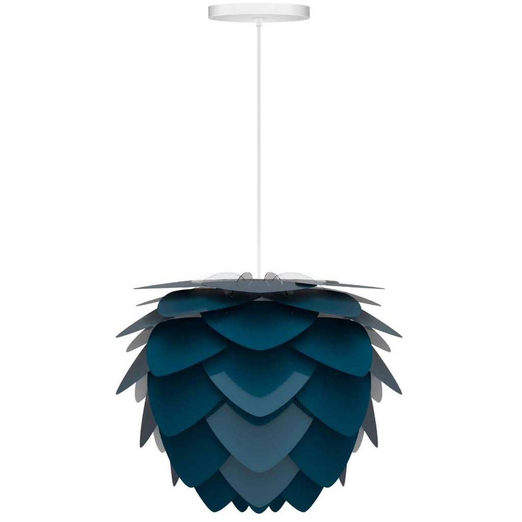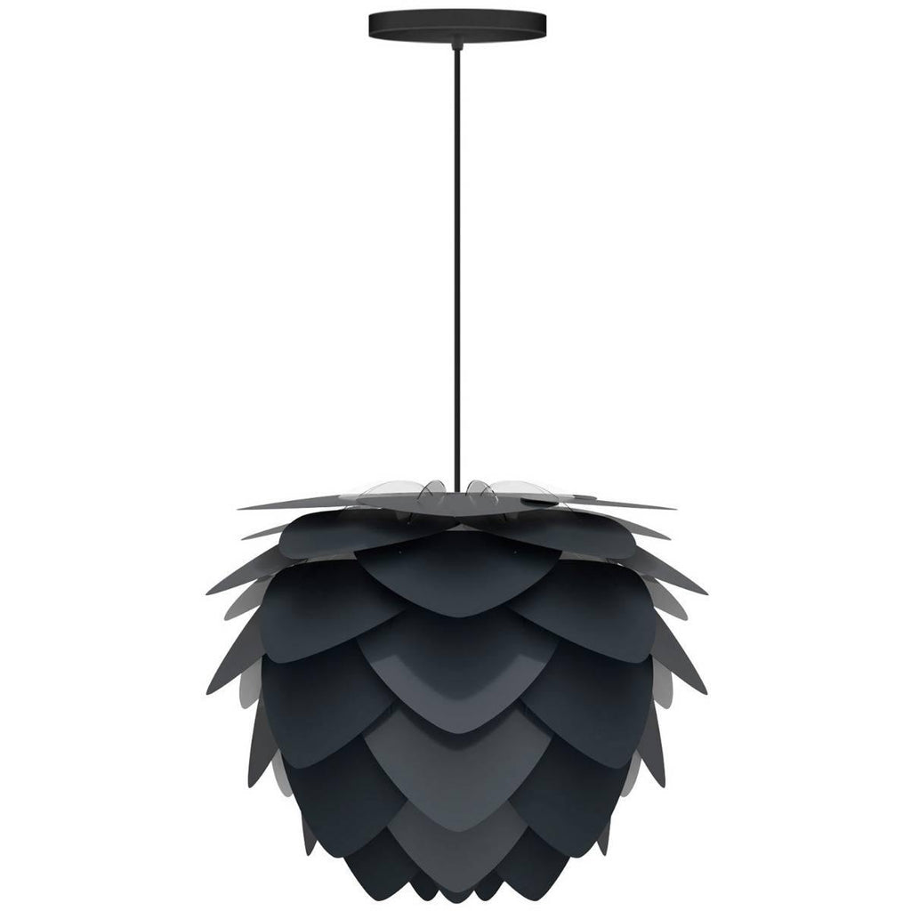This Aluvia Mini Pendant by UMAGE is a charming piece of interior décor that will uplift any dull corner of your house. Available in anthracite, forest green, pearl, petrol blue, ruby red, and saffron yellow finishes, the pendant can surely entice your guests. This LED pendant has canopies in black or white colors and has a pineapple-like shape. This designer light fixture is unbreakable and hence does not require maintenance. Featuring lightweight aluminum plates, this pendant can be fixed onto the ceilings of any room. The option of the floor and pendant in one makes the light fixture a great choice.