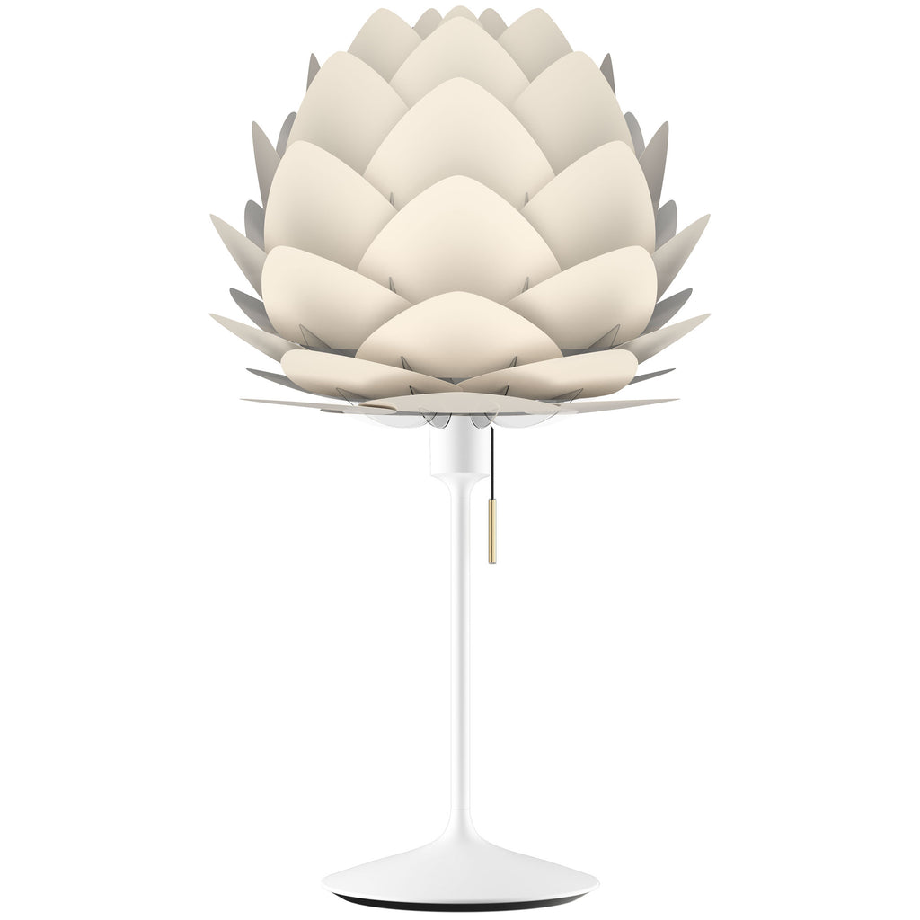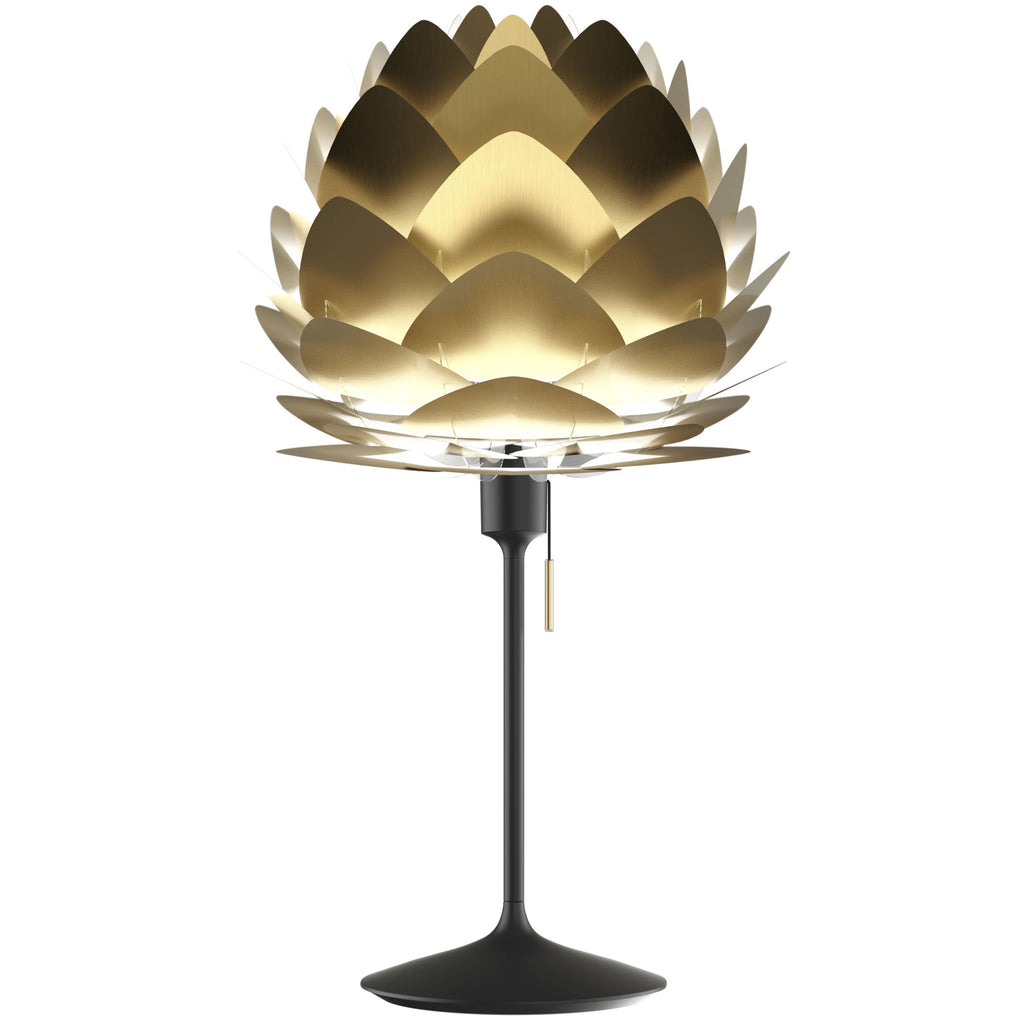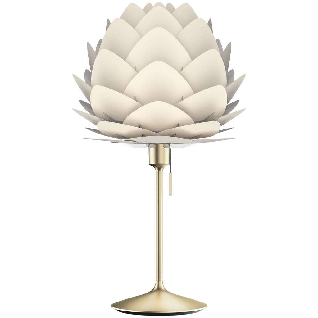 The products of the Danish brand UMAGE, founded in 2008, can be found in more than 40 countries around the world. The brand's unique Scandinavian style combines the highest functionality, simplicity and beauty to provide remarkable furniture and lighting. UMAGE products are inspired by the raw, Nordic landscape, additionally out of concern for the environment, the whole activity of the company, from production to delivery is well thought out and planned to be as sustainable as possible.The Aluvia Table Lamp features an eclectic shade constructed from aluminum leaves. Its sculptural form evokes an enchanting flower with a modern, geometric edge and sits atop a delicate base reminiscent of a champagne flute. The base contains a USB charging port that allows devices to be charged even when the lamp is off. On/off pull chain located on socket.