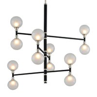 Create an unusual effect in the living spaces by adding the Andromeda Chandelier by Troy Lighting. Featuring an asymmetric design with hand wrought iron metal work, this Chandelier is available in 8, 12 and 16 light fixture. Designed with multiple intersecting batons which are connected to a vertical stem, this chandelier has a classy design. Also, it has multiple horizontal baton with glass globe diffusers that creates a naturally beautiful ambiance. This decorative chandelier by Troy Lighting is ideal to be installed in the living rooms, dining areas, hallways or entrances.