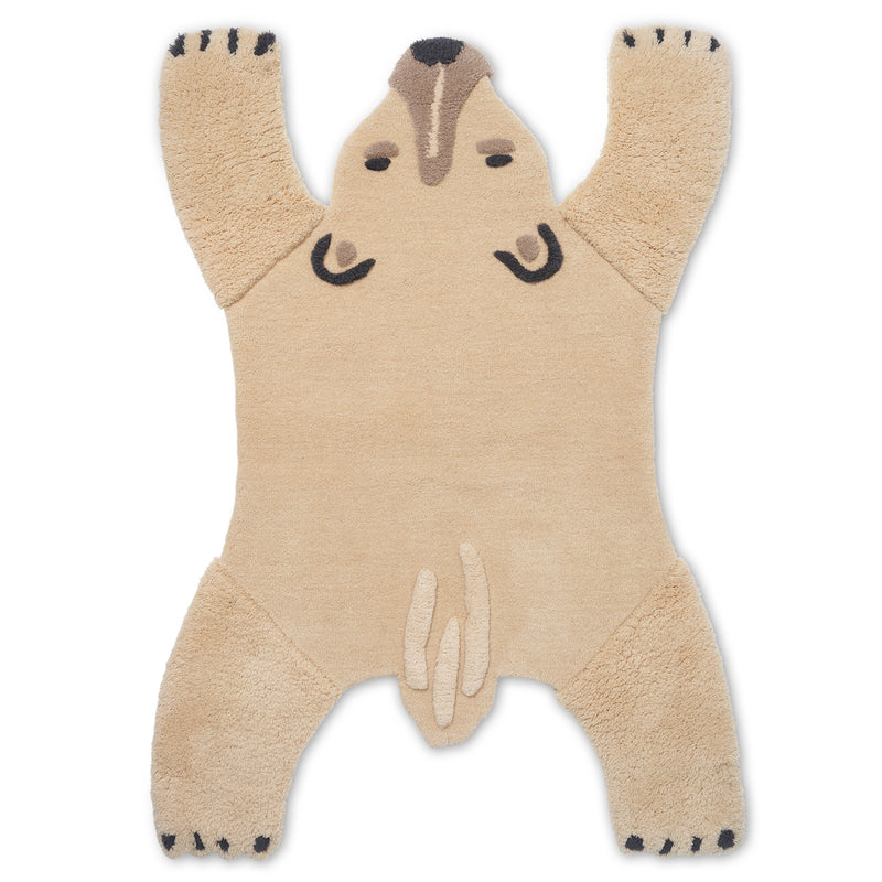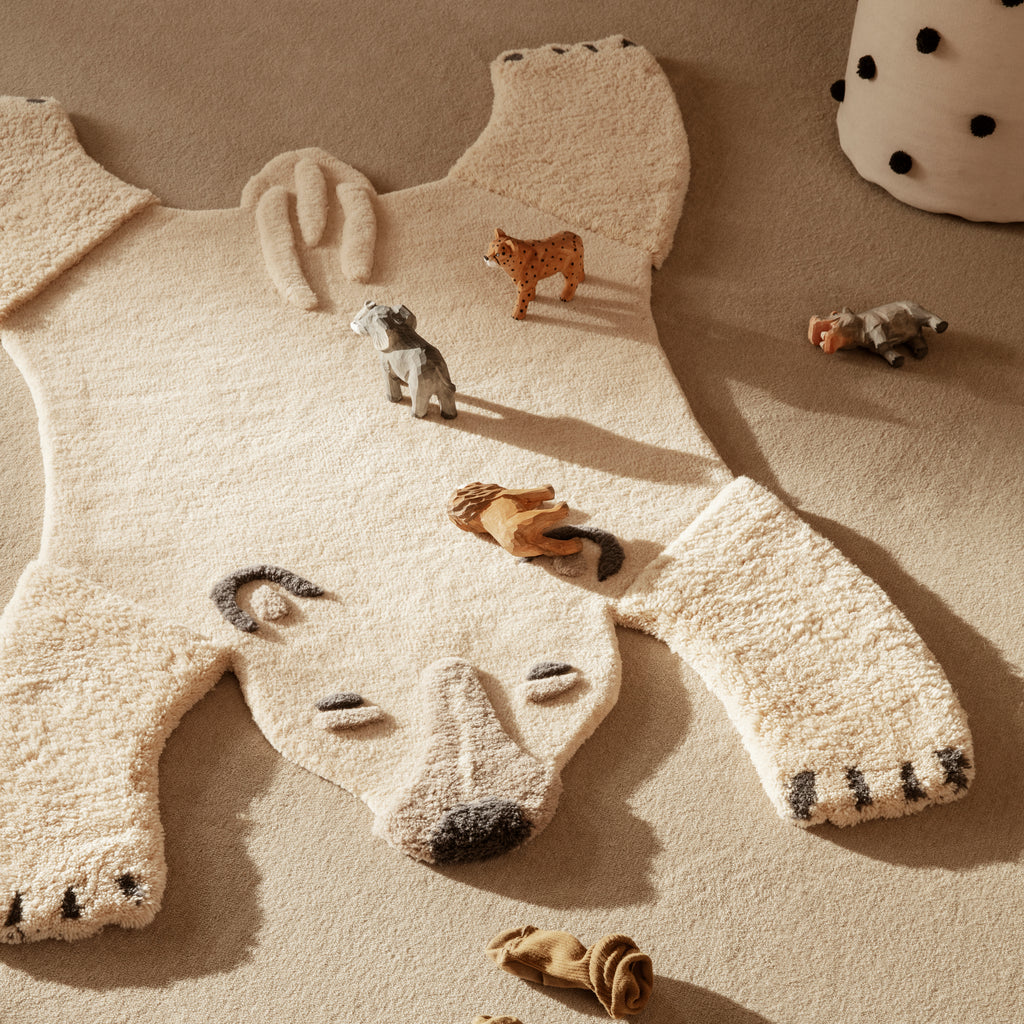 This fluffy addition to the kid’s room offers a playful and tactile touch to your little one’s space. Formed in the shape of a friendly polar bear, the hand-tufted rug features contrasting pile heights that add a sensory element to playtime and make it a fun and unique wall hanging.