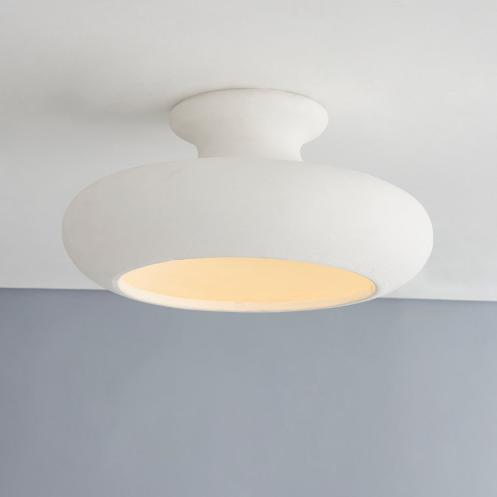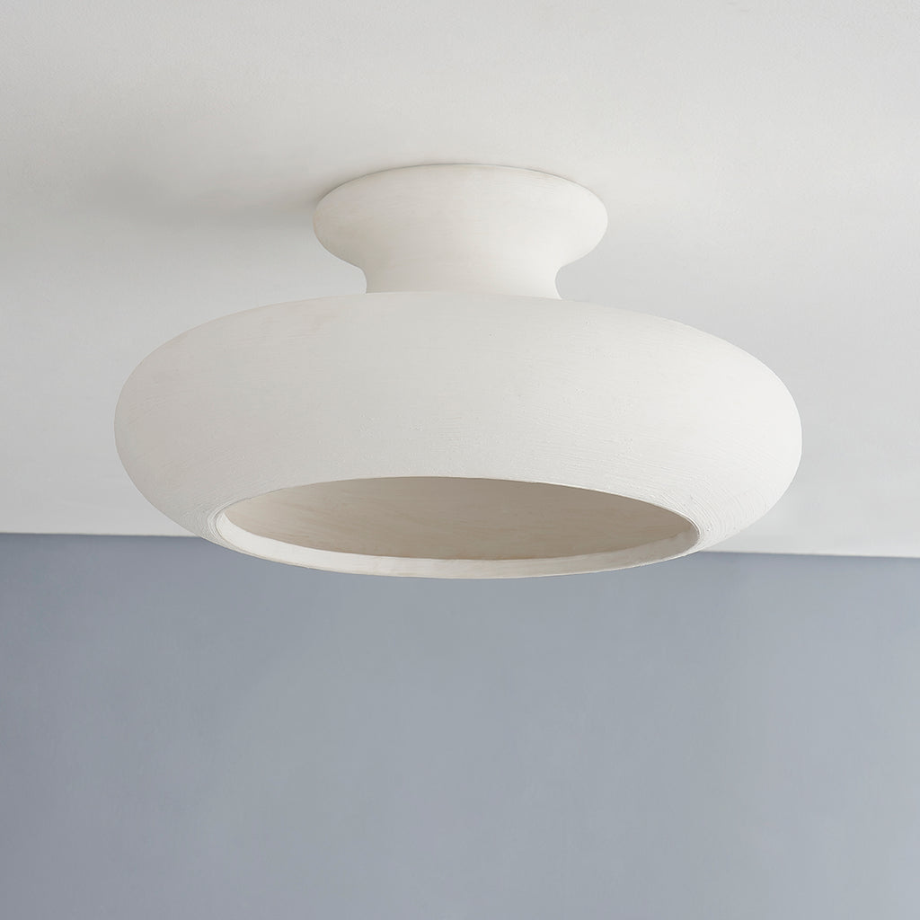 Reminiscent of a hand-thrown bowl, Annie is both modern and inviting. This soothing yet stylish white ceramic semi-flush is finely textured both inside and out, giving the fixture an earthy feel. When lit, light fills the shade with a soft, calming glow.