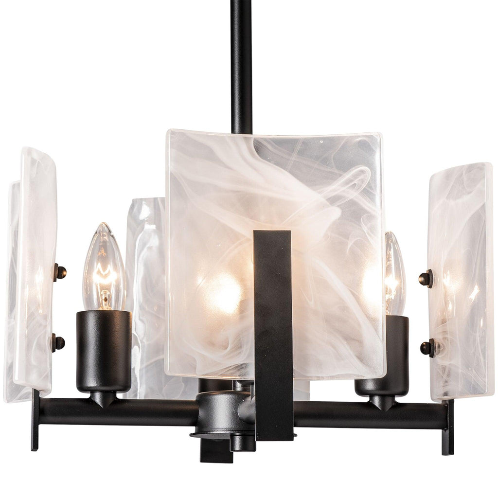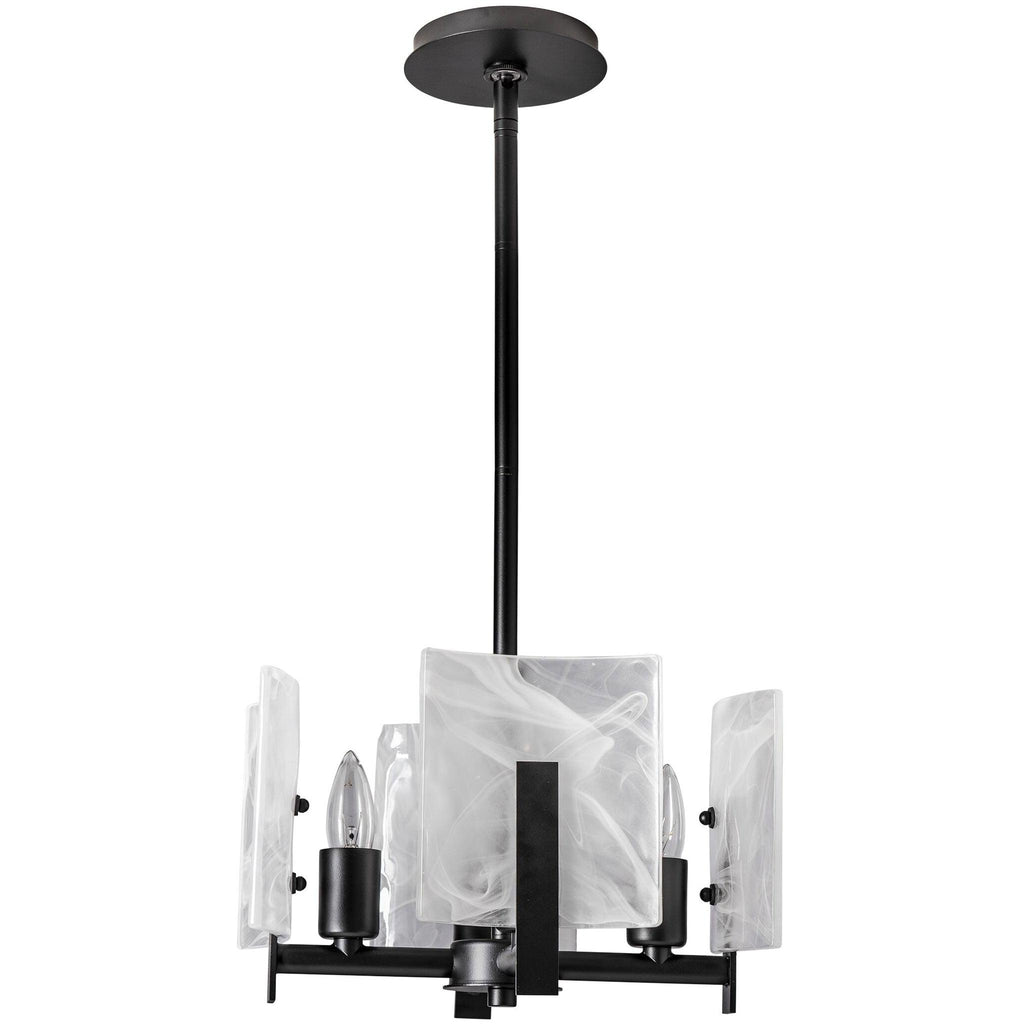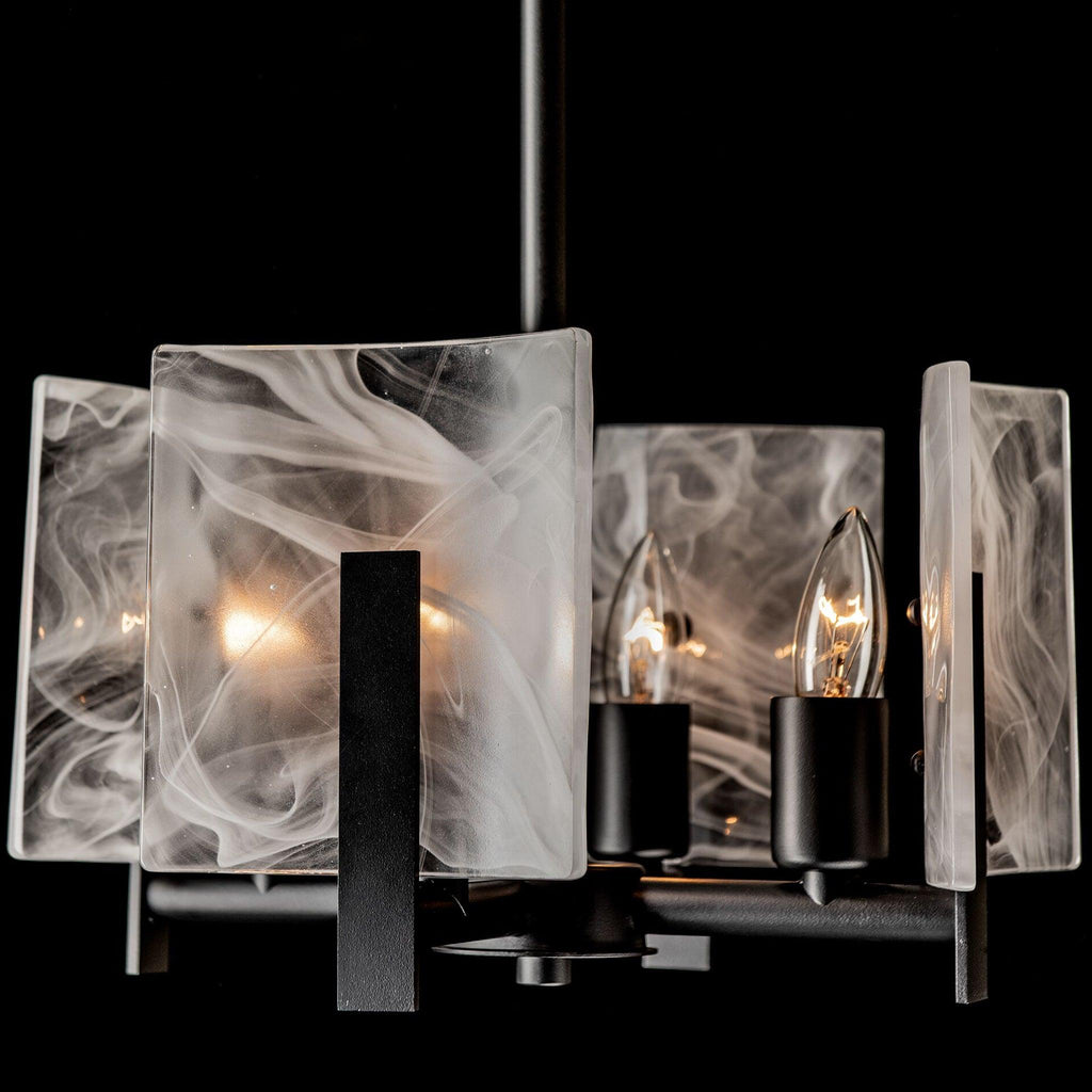Versatility. This Arc fixture is so adaptable that it can be used as easily as a semi-flush or a pendant, depending upon the setting. Features an adjustable-height Multi-Stem making it adaptable to a variety of settings. The Arc's trademark convex glass panels feature abstract white "swirls" for a unique look. Available in all standard finishes.