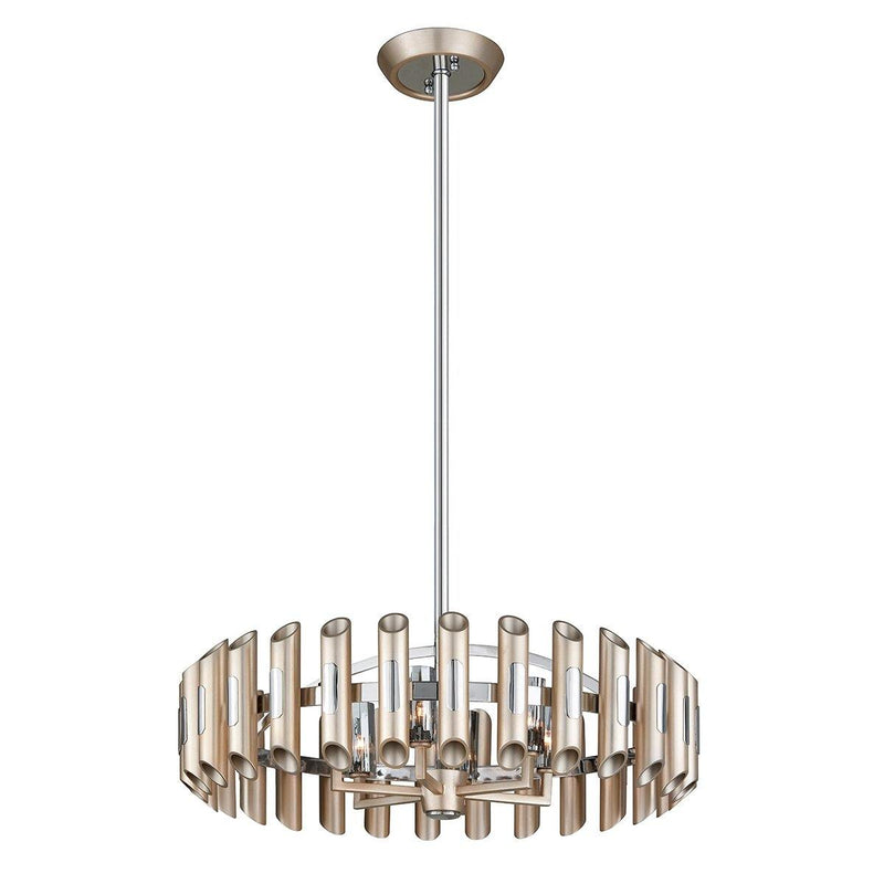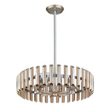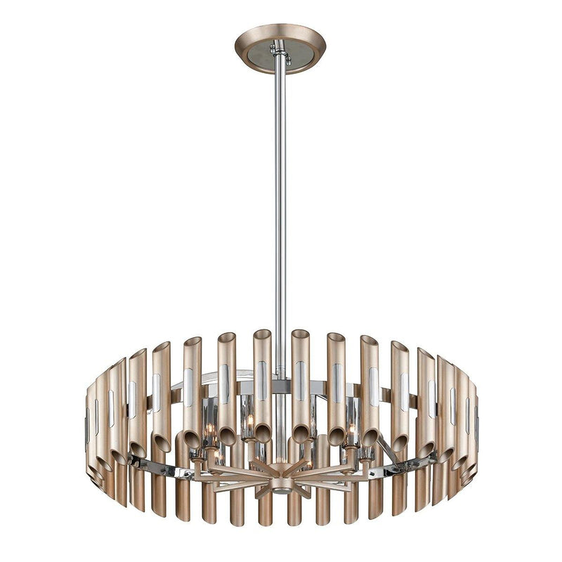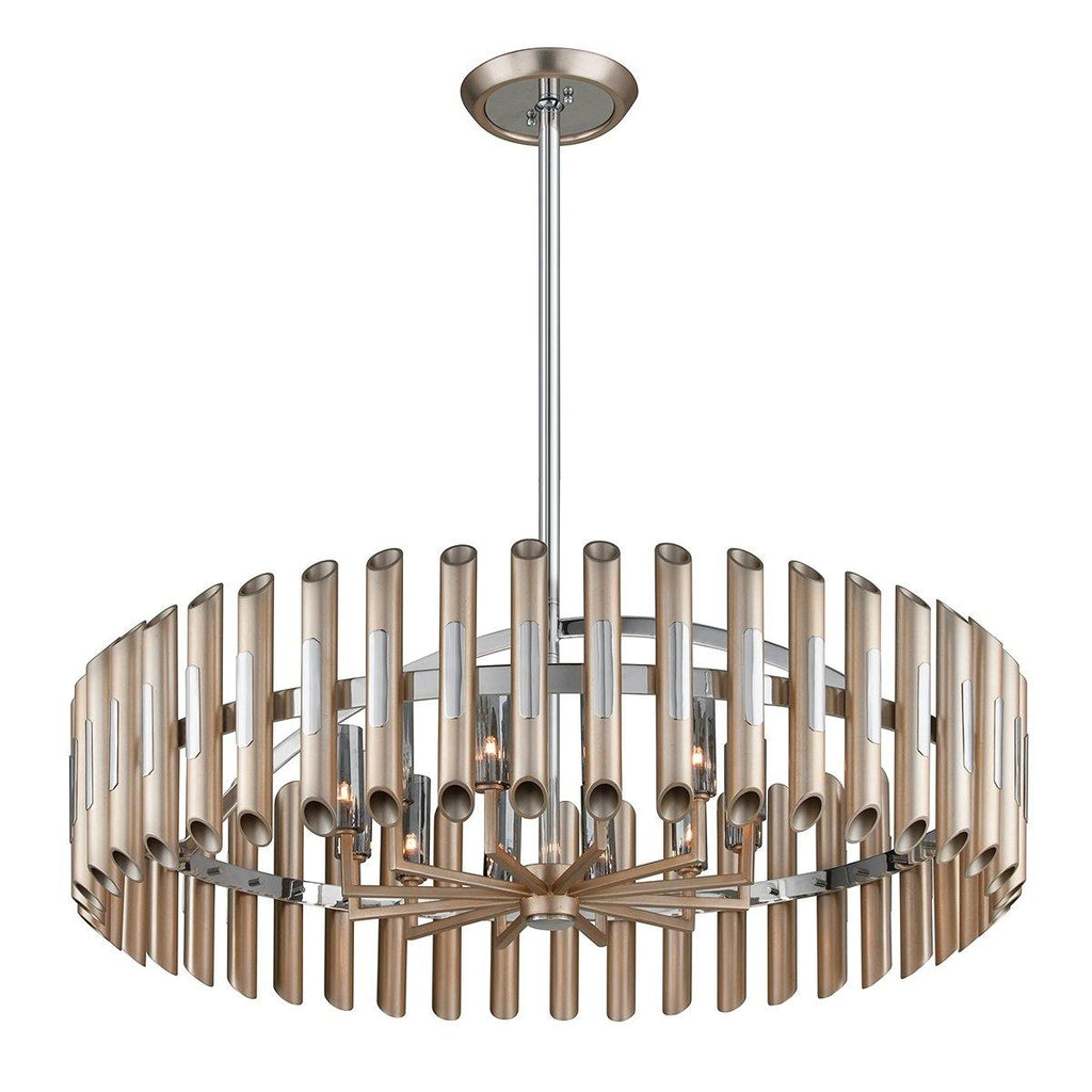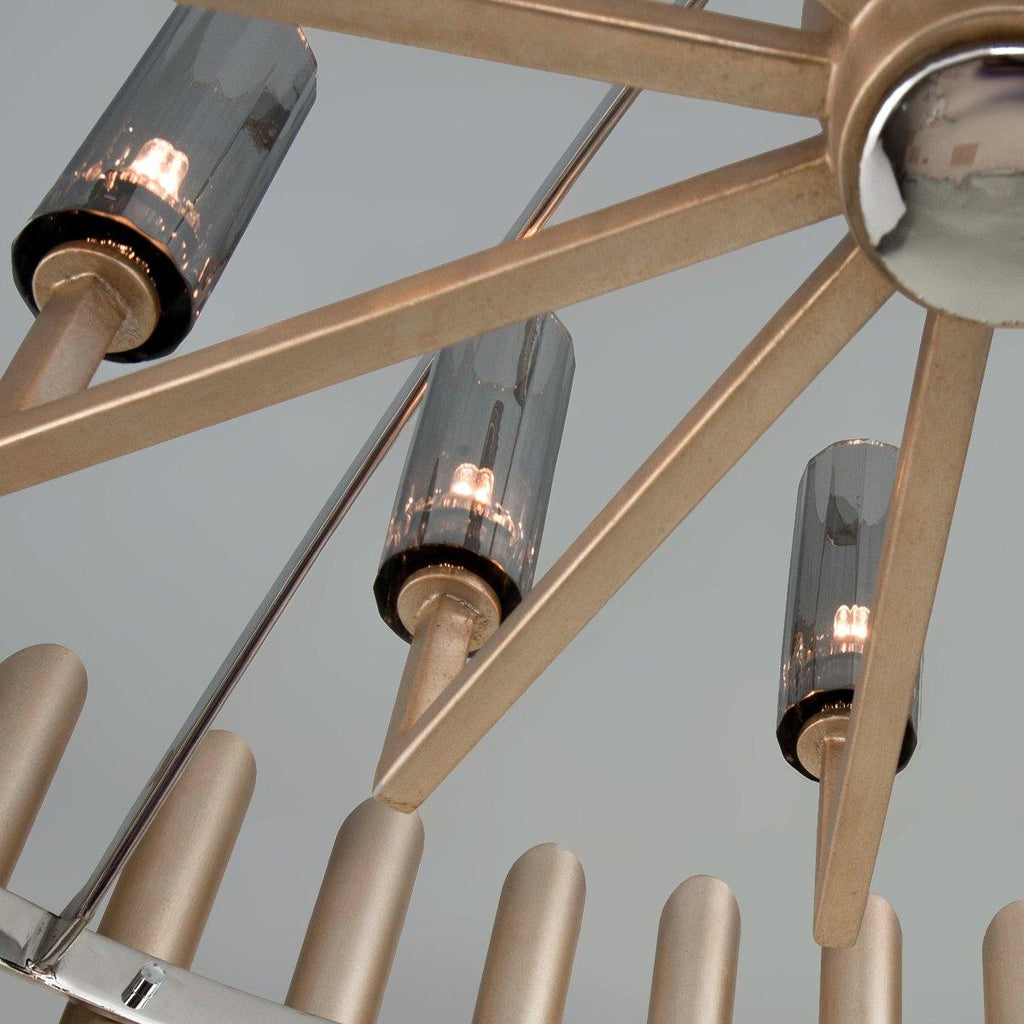 The Arpeggio Chandelier by Corbett Lighting is a well-structured lighting accent. With a fine arrangement of 6-12 lights, this chandelier with a G9 wedgebase LED is available in small, medium, and large sizes. This architectural suspension comes in a soothing finish of antique silver leaf with polished stainless accents. The faceted smoke glass shade adds to the beauty. The circular shape of the chandelier with uniform cylinder-like rods around makes it super stylish. The suspension rod at the center is attached to the branches that extend to form the base of the lamps. Give the ambiance at home a soothing and pleasing feel by including this chandelier.