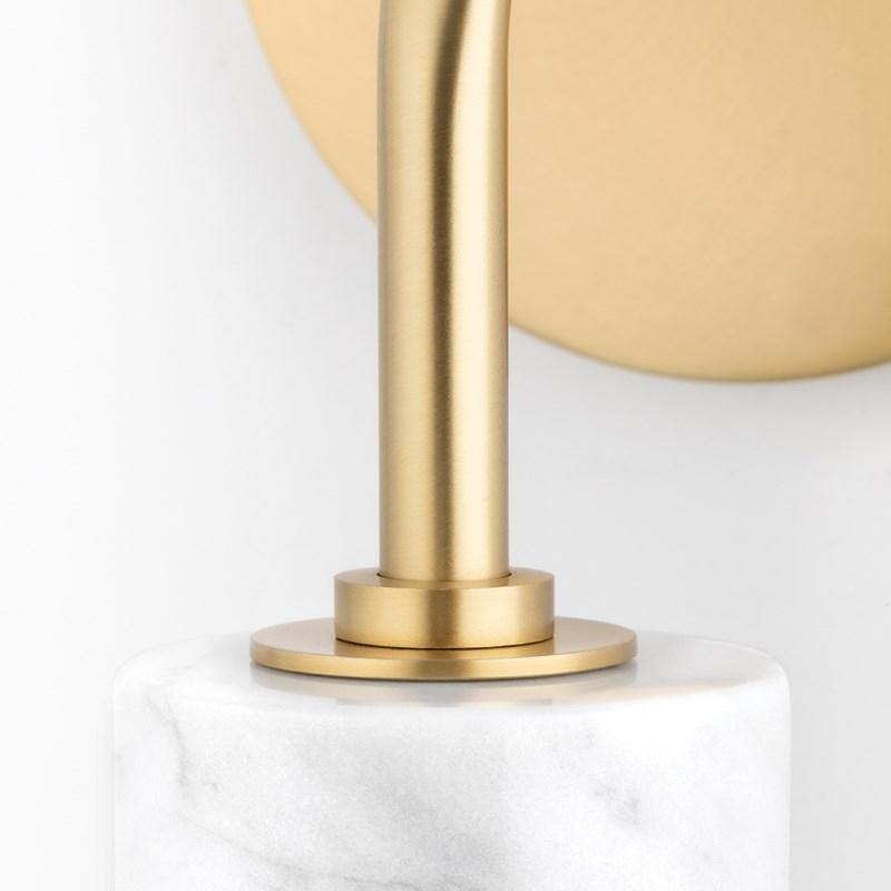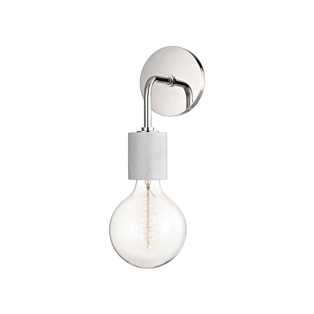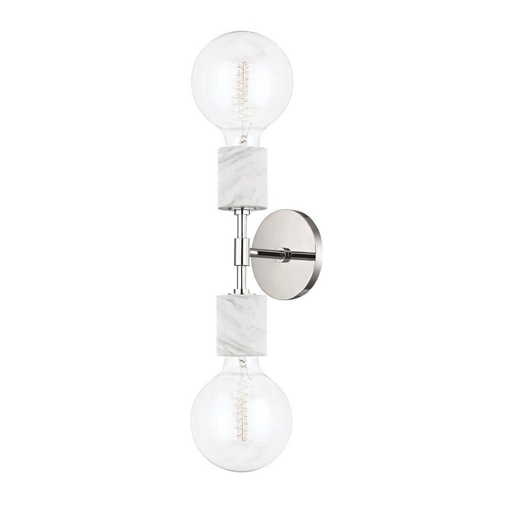 The Asime Wall Sconce by Mitzi has a basic appeal yet works well for houses with the minimal settings. This sconce is available in both single shade and double shade design. The light fixture looks appealing in both aged brass and polished nickel finish. Featuring an incandescent lamp, the sconce is attached to a metallic plate base. Additionally, this sconce has an E26 Medium Base and a marble finish holder. Fix this on empty walls and small corners to brighten up the spaces.