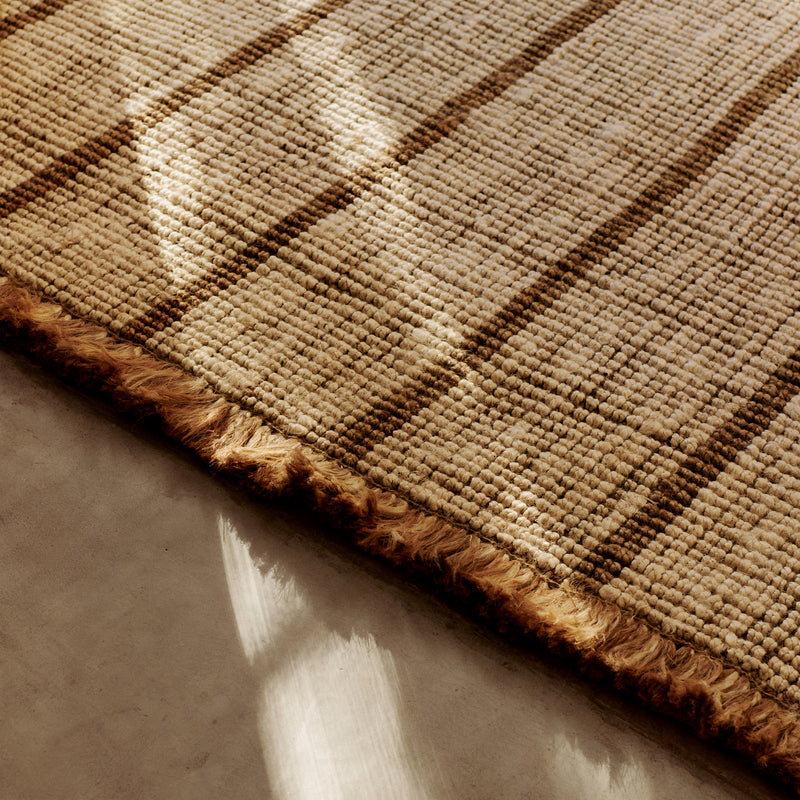 The Athens Stripes Rug draws its inspiration from the plush carpets adorning Mediterranean stone houses. Meticulously handwoven from pure jute, it showcases a richly textured design that infuses any space with warmth and natural elegance. Featuring bold yet subtly softened stripes and soft, full fringes, this rug effortlessly blends rustic charm with timeless sophistication.