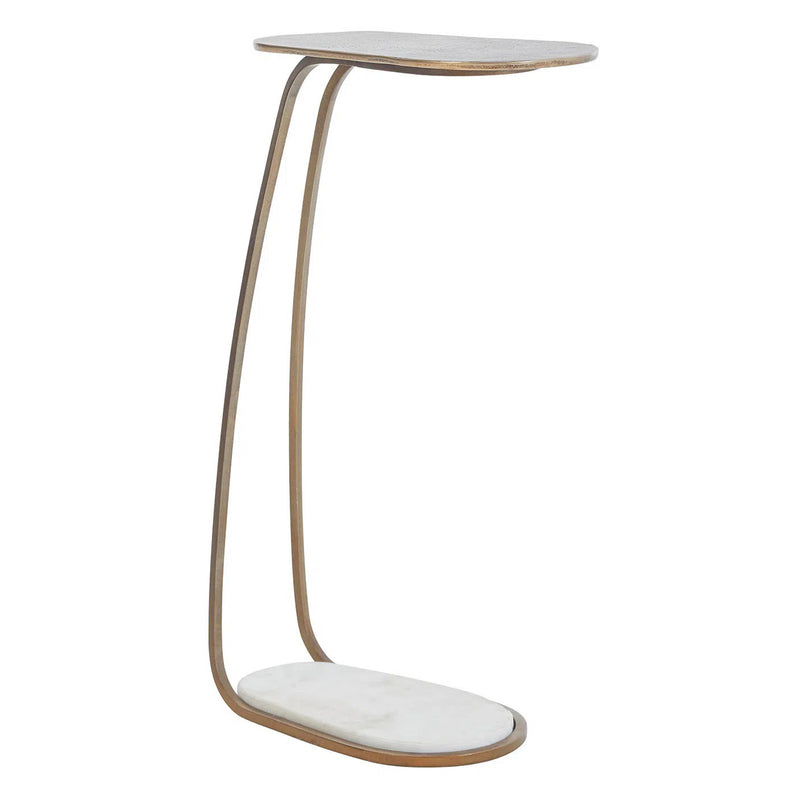 Marble and antique brass combine to bring an air of luxury to the living space. This side table’s unique structure allows it to be pulled right up to a sofa to act as a place to rest food, drinks or reading material. The romantic quality of this furniture piece’s colors and textiles makes it a perfect fit for both classic and contemporary homes.