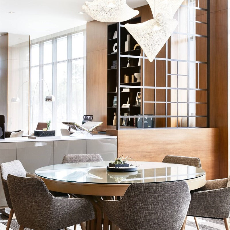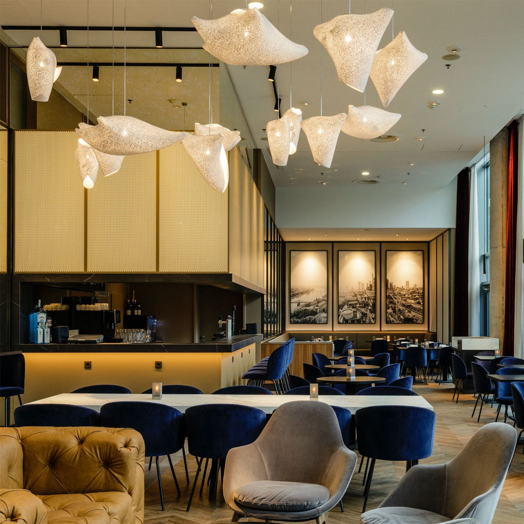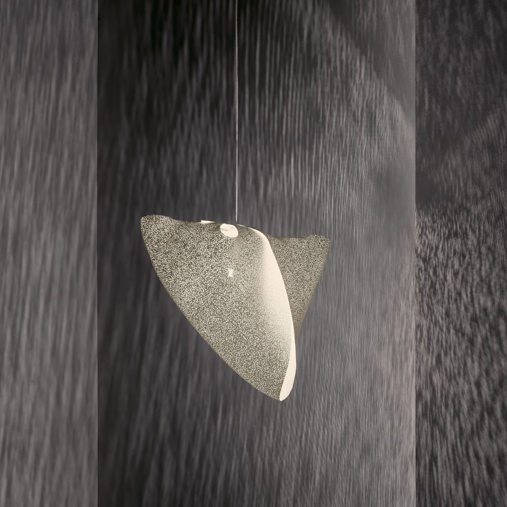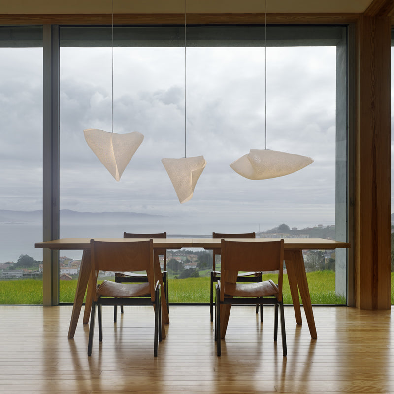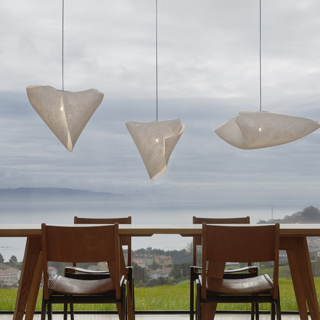 The Ballet collection arises from experimentation, giving rise to forms created from the overlapping or joining of its vertices, leaving freedom to the flexible nature of the material itself. Ballet Elancé is one of the pendant lamps in the collection designed by Héctor Serrano that represents a state in dance. Fluid, natural and asymmetrical volumes that make its forms change depending on the point of view. A constant dance of light and shadows