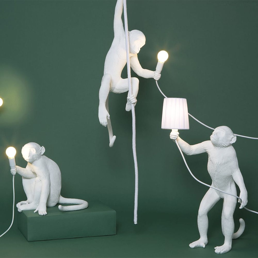 A crazy and crafty family. Monkey lamps have a strong theatrical impact in which art, design and the world of nature blend together creating magical products. The perfect scenography for your home.