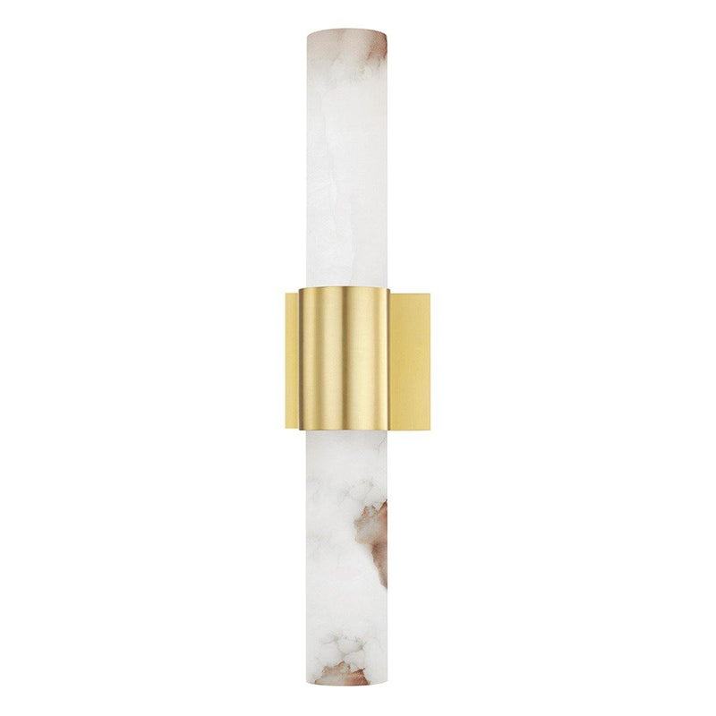 Want to add a little drama to your setting? The Barkley Wall Sconce Barkley Wall Sconce is a perfect addition to any kind of décor. A long cylindrical alabaster takes the center stage accompanied by a band of cast metal for a stunning appeal. Fixed with 2 LED lamps, this sconce gives a warm ambience when lit. This E26 light source sconce is offered in three beautiful finishes; aged brass, polished nickel and old bronze.