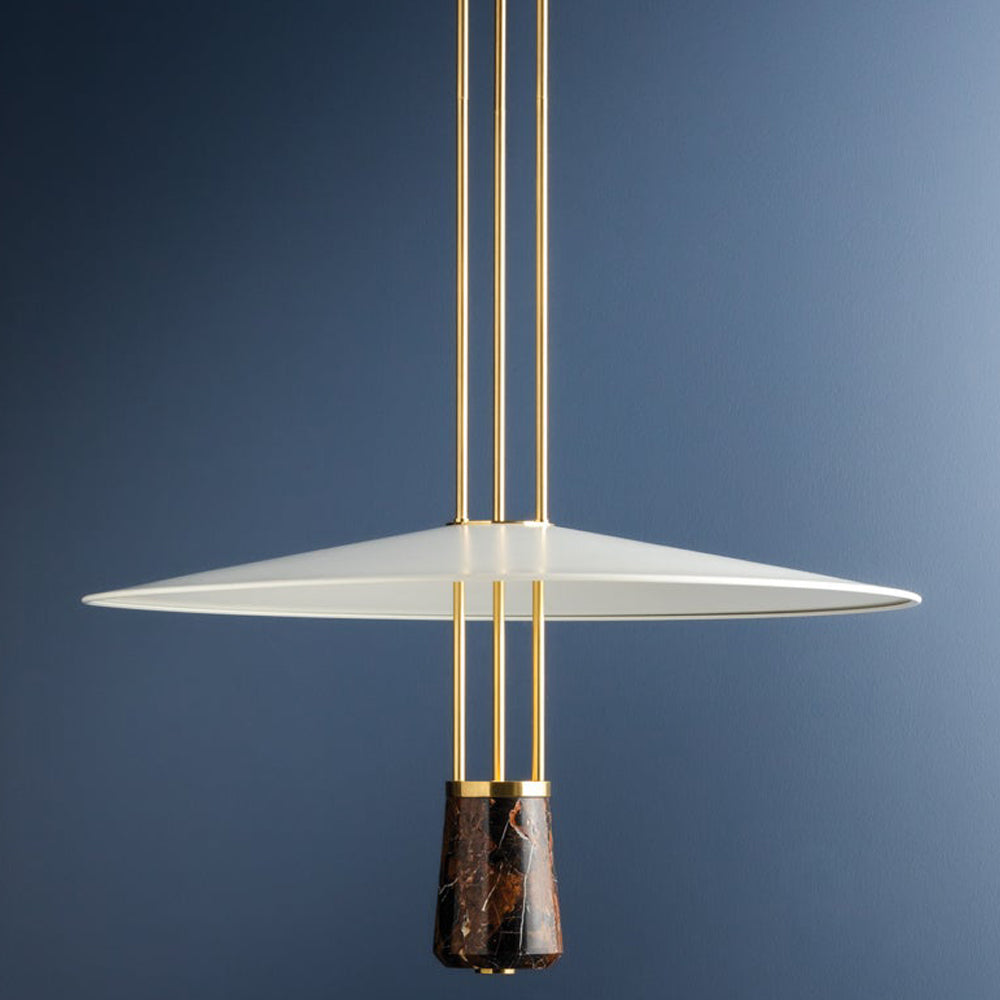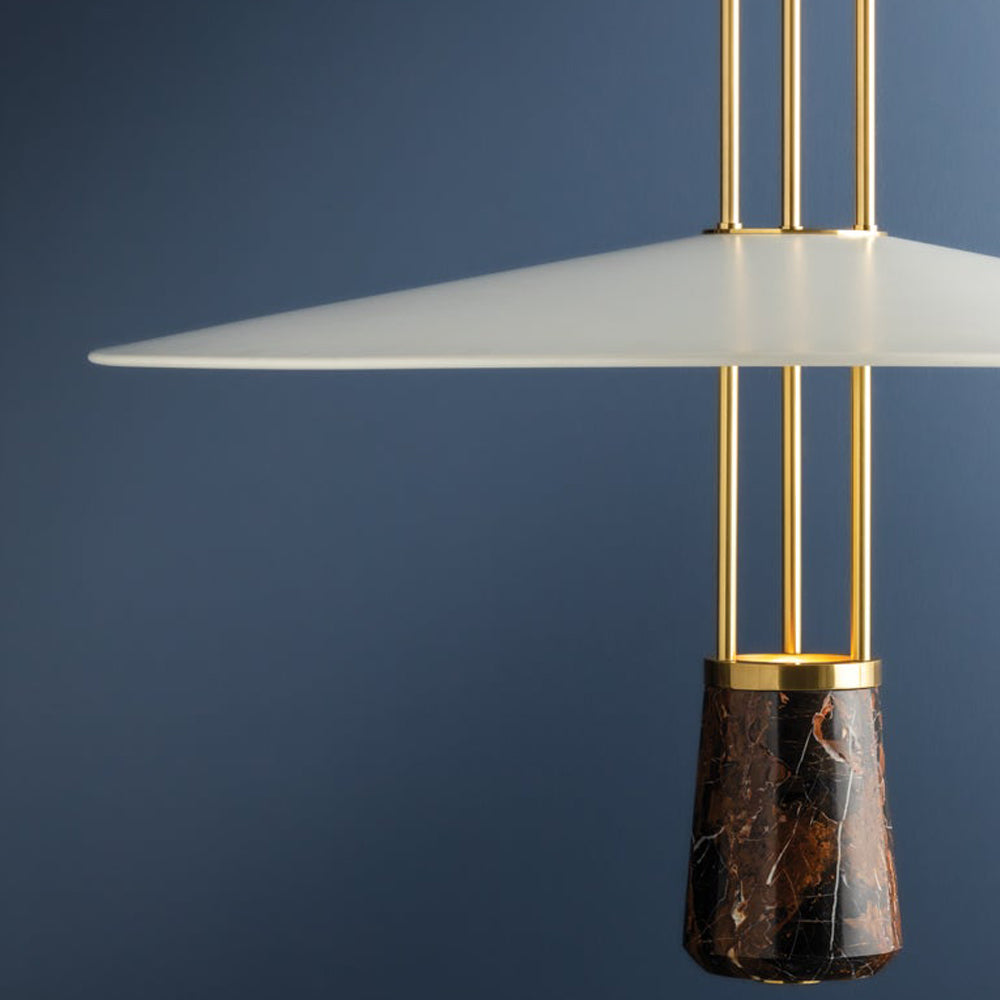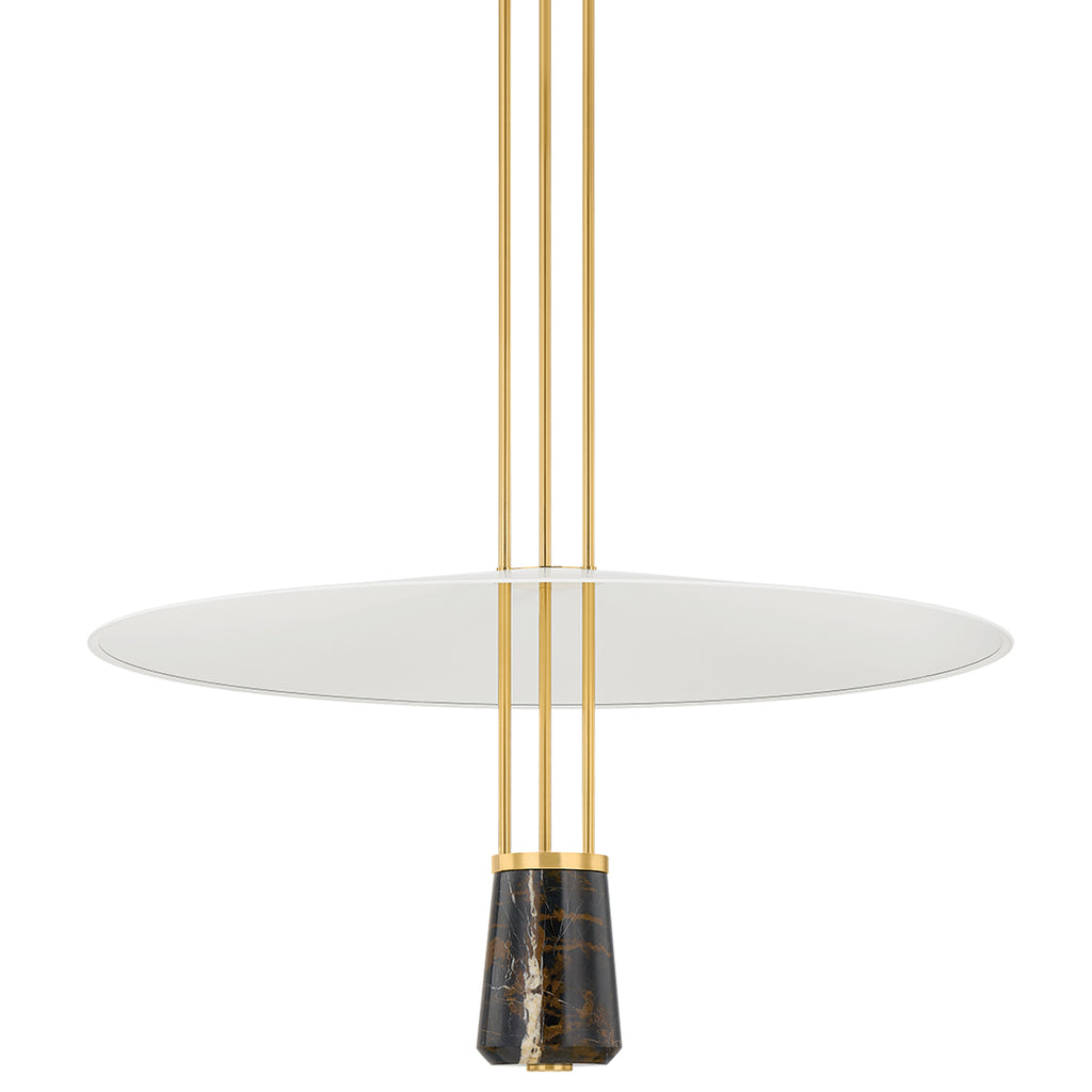 Inspired by the graceful wingspan of a crane, Barnegat has a serene silhouette with mid-century design appeal. The wide, slender shade is balanced by the visual weight of the dark St. Laurent marble at the bottom of the fixture. To complement the other distinctive materials, the metalwork is finished in Aged Brass. Make a poetic statement in living or dining spaces with this timeless pendant light.