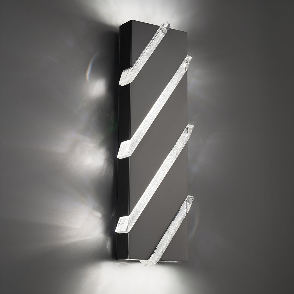 Groovy. Reminiscent of the marks left by glacial ice sliding across rock, striations of Optic Crystal are lit by hidden LEDs glimmering between this wall sconce’s polished black surface.