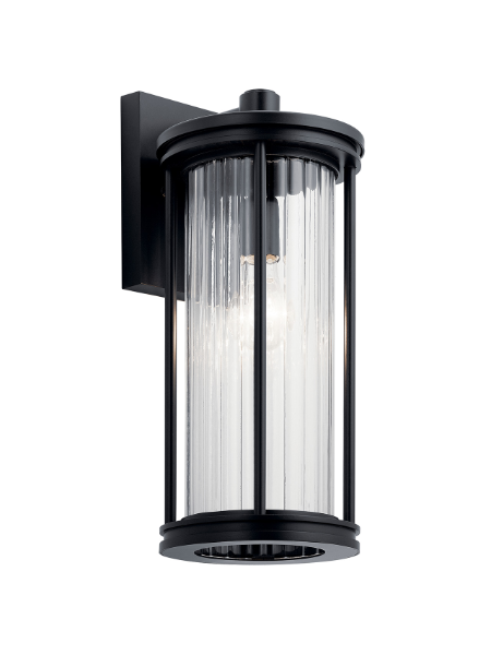 The Barras™ 16" 1 light outdoor wall light features a classic look with its Black finish and clear ribbed glass. Inspired by the early electric era style, it is sleek and stately. A perfect addition in several aesthetic outdoor environments, including traditional and transitional. OVERSTOCK SALE.