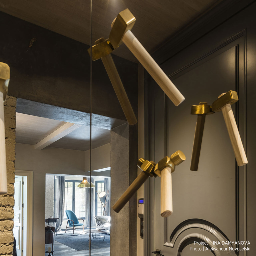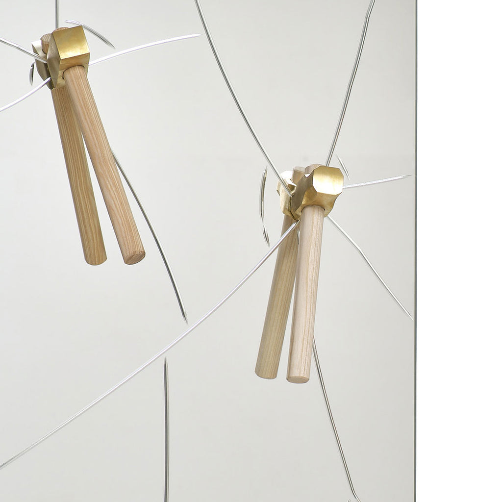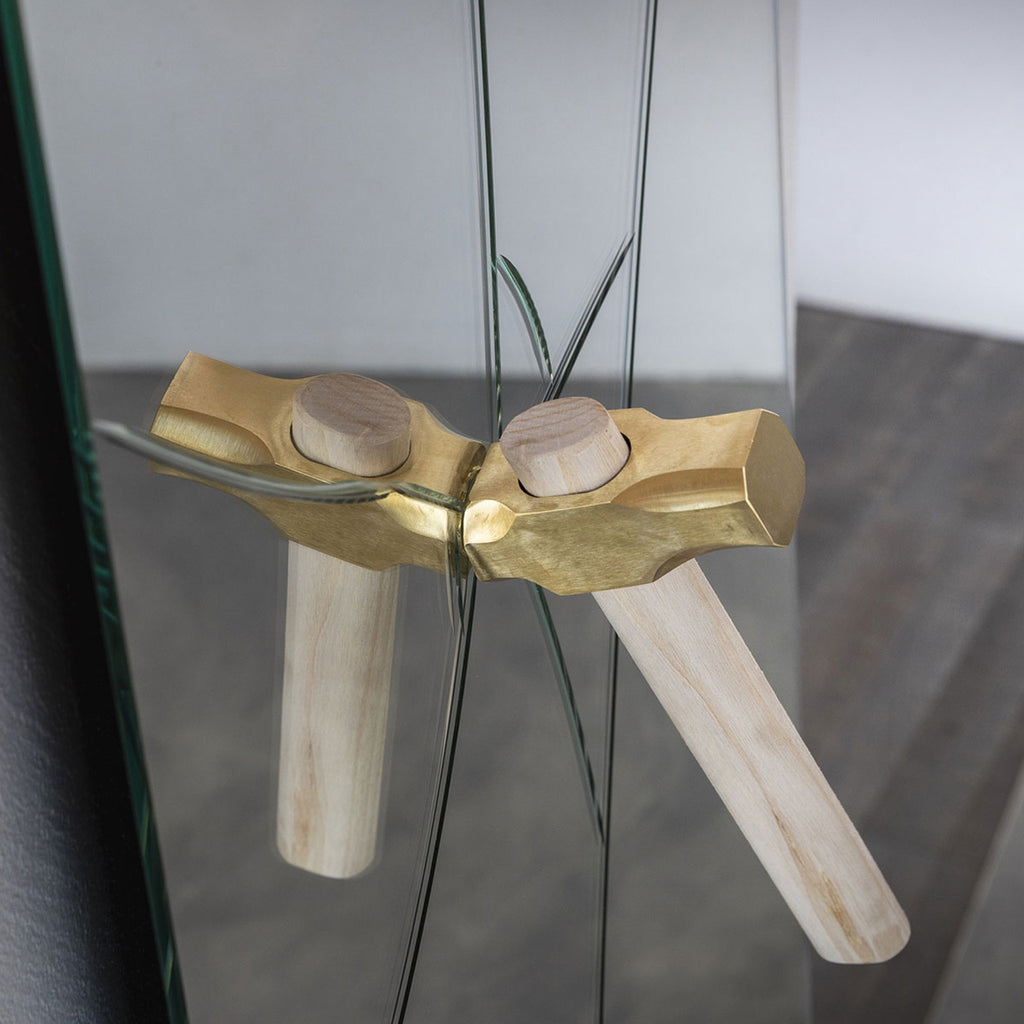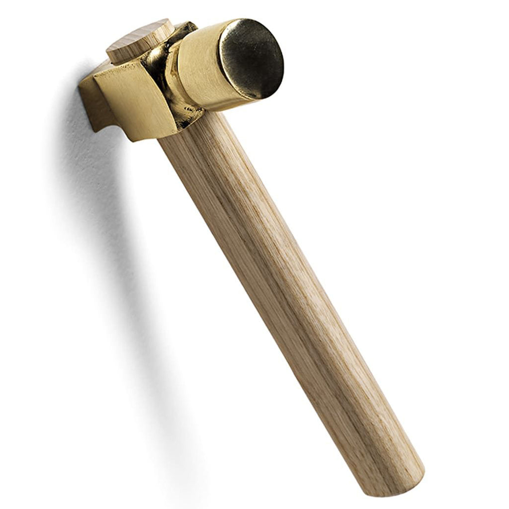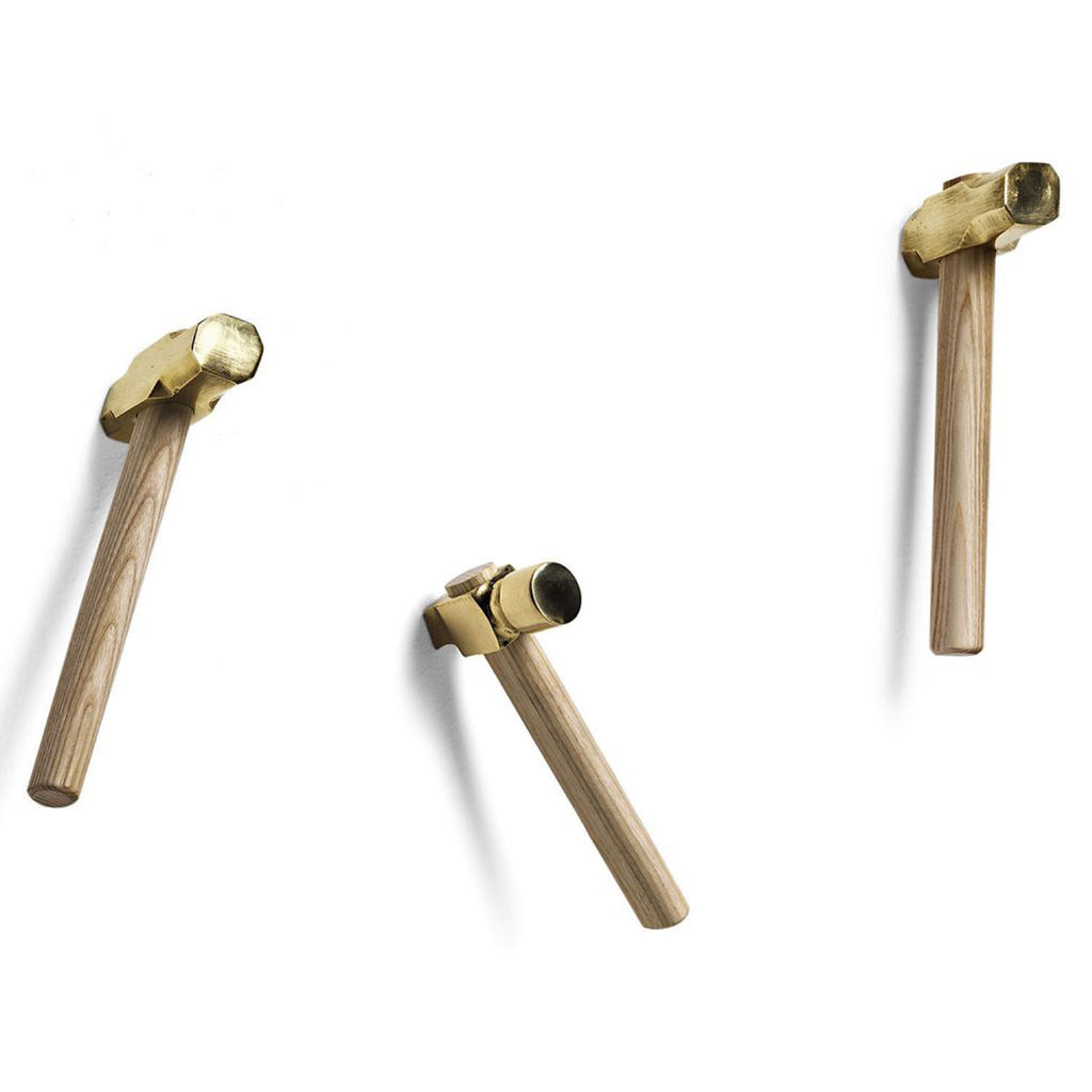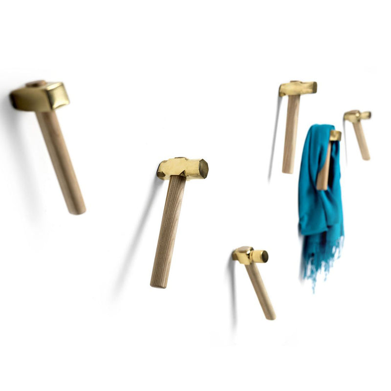 Basta is a coat hanger with an olive natural ash handle and top in a cast brass polished finish. Basta is a tool attached to a gesture: linked to a precise gesture, to hammer, to nail, to break a piggy bank, or to hit anything that we want to break, and when we are angry we would like to own a hammer to destroy the printer that doesn’t work! A hanger that decorates your wall with a playful style. Also available the mirror with hammers coat hanger.