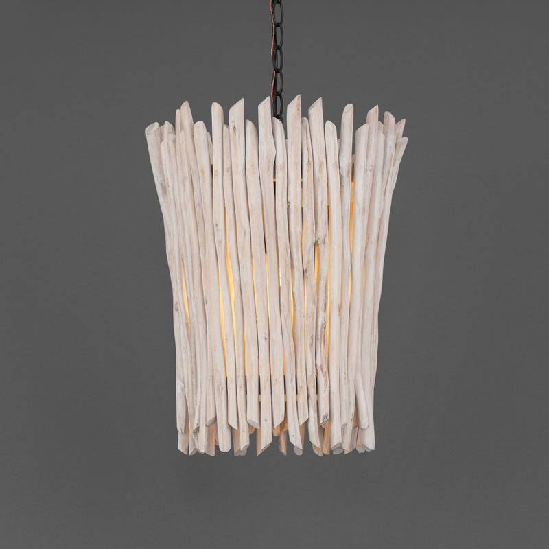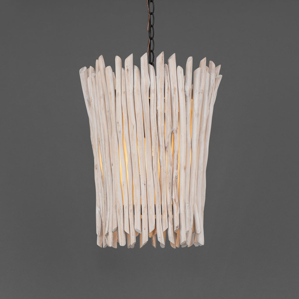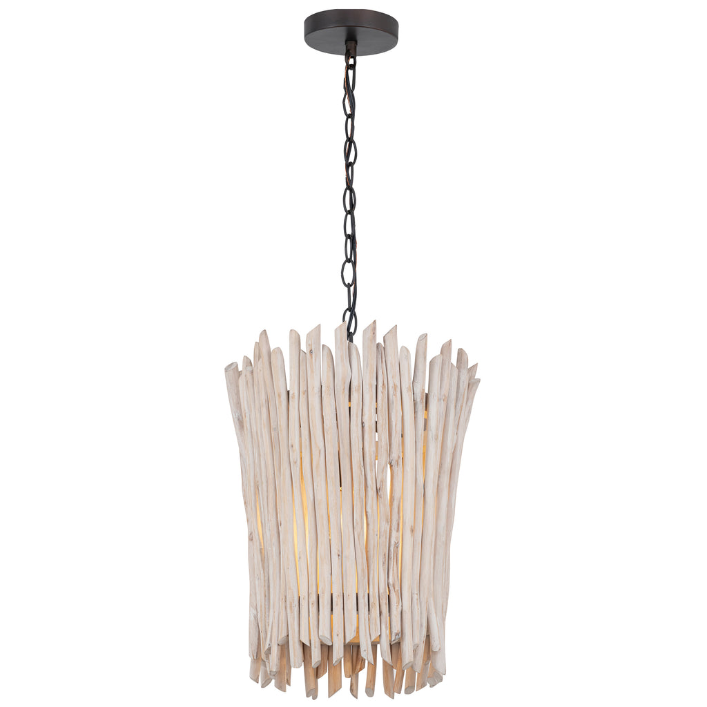 Thin branches of eucalyptus are linked together into a tapered bouquet shade. Individually shaped by hand, the impeccable craftsmanship includes a hand-applied Weathered White finish on the wood that complements the multi-tonal Dark Bronze finish on the metal.