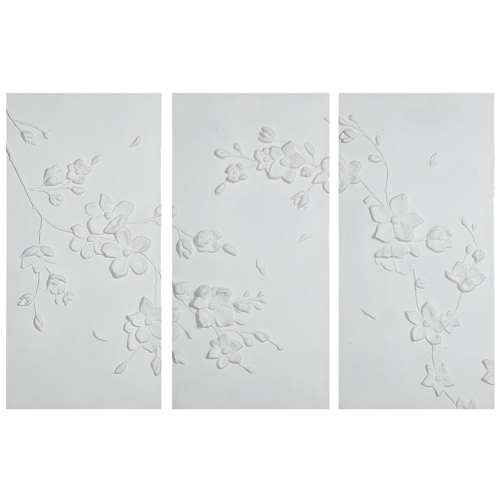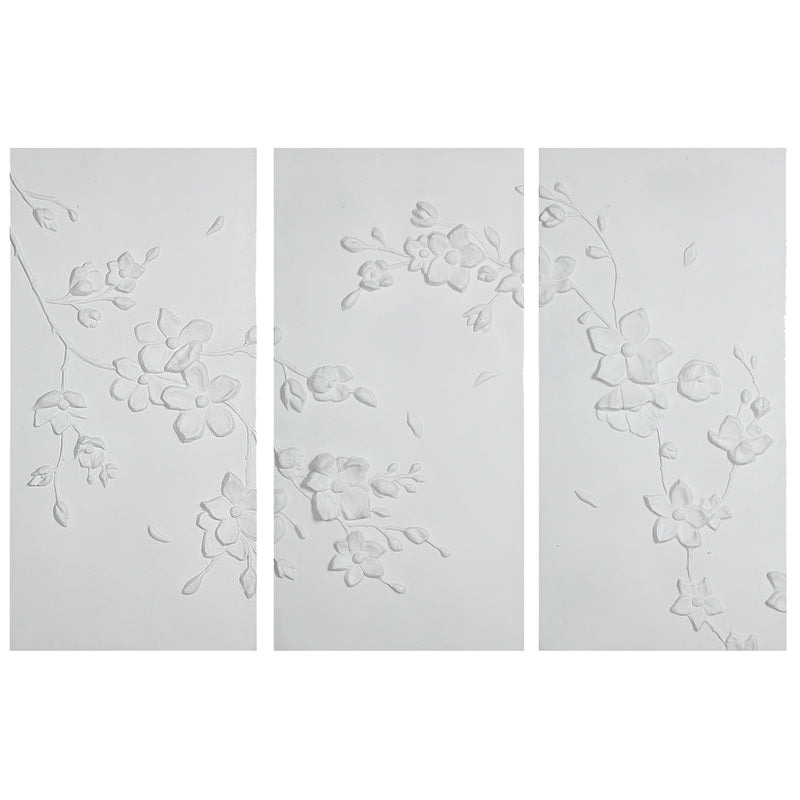 Spanning nearly 5 feet, this bloom-filled wall art is just the piece you need to add beautiful botanical style to a large wall. Composed of three high-quality canvases, this unique triptych features an array of hand-painted multidimensional shapes for a dramatic effect that delivers a transitional touch to any interior.
