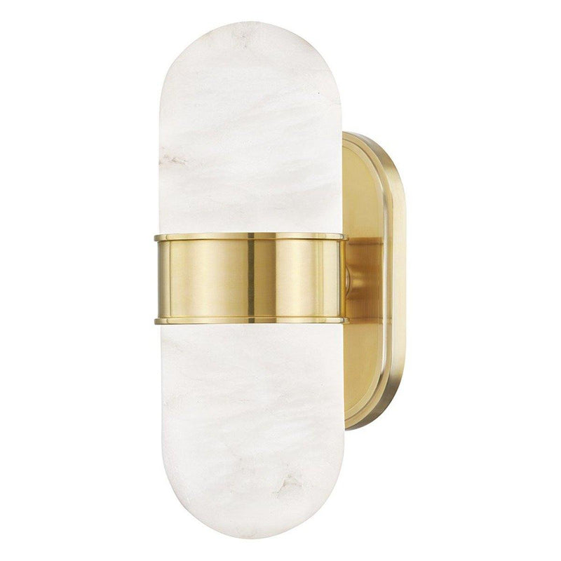 The Beckler Wall Sconce from Hudson Valley is a sleek addition to any modern, classic, or romantic space. A beveled metal band firmly holds a pair of opal matte glass shades, giving it an elite touch. This fixture can be mounted vertically or horizontally, depending upon the style and theme of your home. It features a matching large beveled metallic back plate, which helps in easy installation. Offered in aged brass, old bronze and polished nickel finishes, this light has an E12 light source.