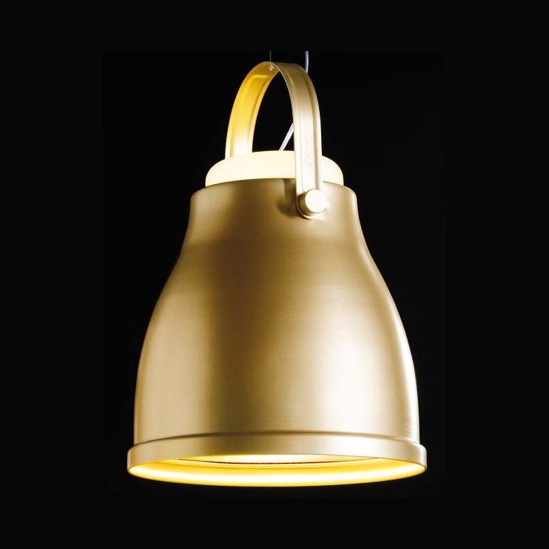 The Bell Pendant Light by Antonangeli is an exquisite suspension lamp with an anodized aluminium round shape that is integrated with an advanced technology soul and a decorative display. Available in small and large dimensions, it allows you to create three compatible collections in bronze, gloss black, gloss white, natural aluminium, copper and brass colors. With a halogen light, it emits bright yet soothing light without emitting unwanted heat. Their modern style fits a lounge, bar, kitchen, and dining area. It seamlessly blends with contemporary interior and it can be used to give your home a pleasant bash look.