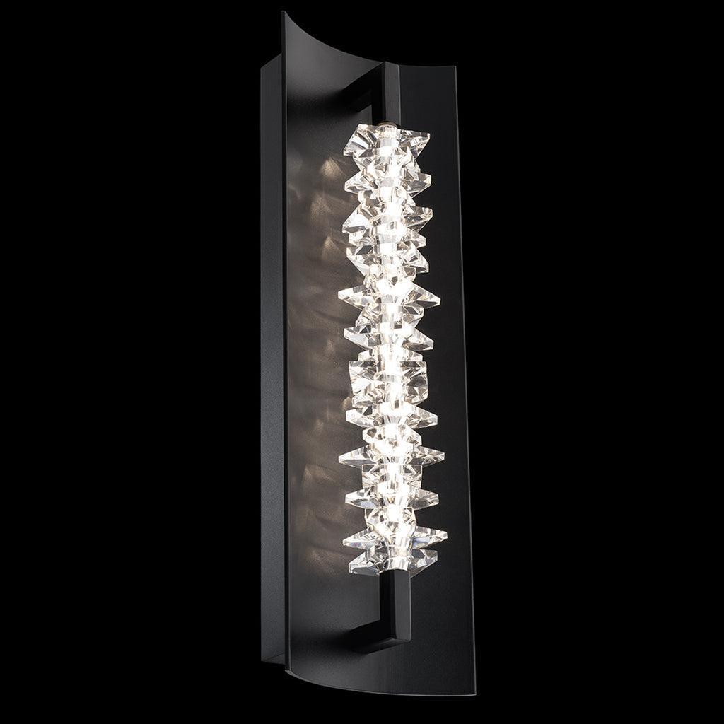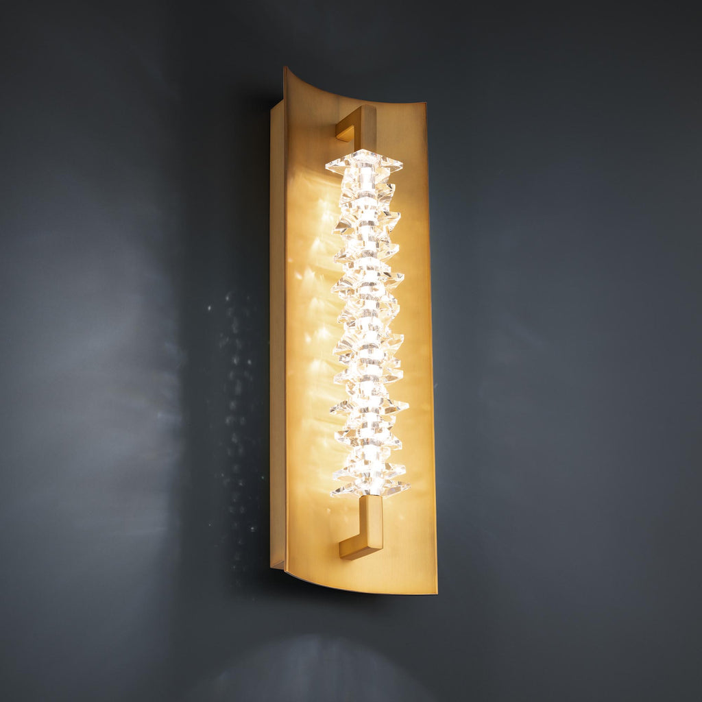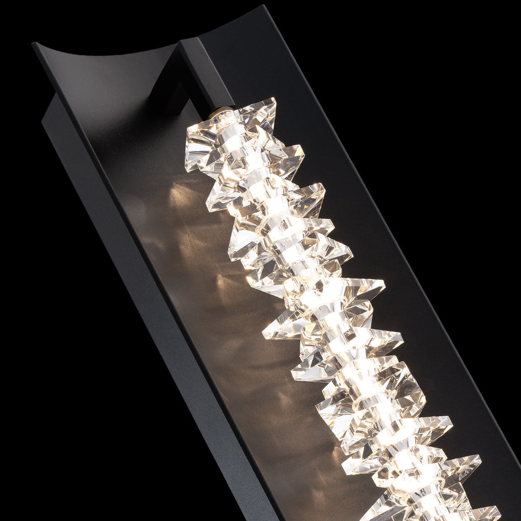 Bold and unapologetically modern, the Bergy crystal wall sconce pushes the boundaries of elegance with its sharp, linear design and precision craftsmanship. The faceted Optic Crystal plates, reminiscent of jagged icebergs, are stacked in a striking formation on a gleaming backplate, delivering a powerful visual statement. Hidden within its core, a line of LEDs injects a sleek glow, amplifying the crystal’s raw brilliance.