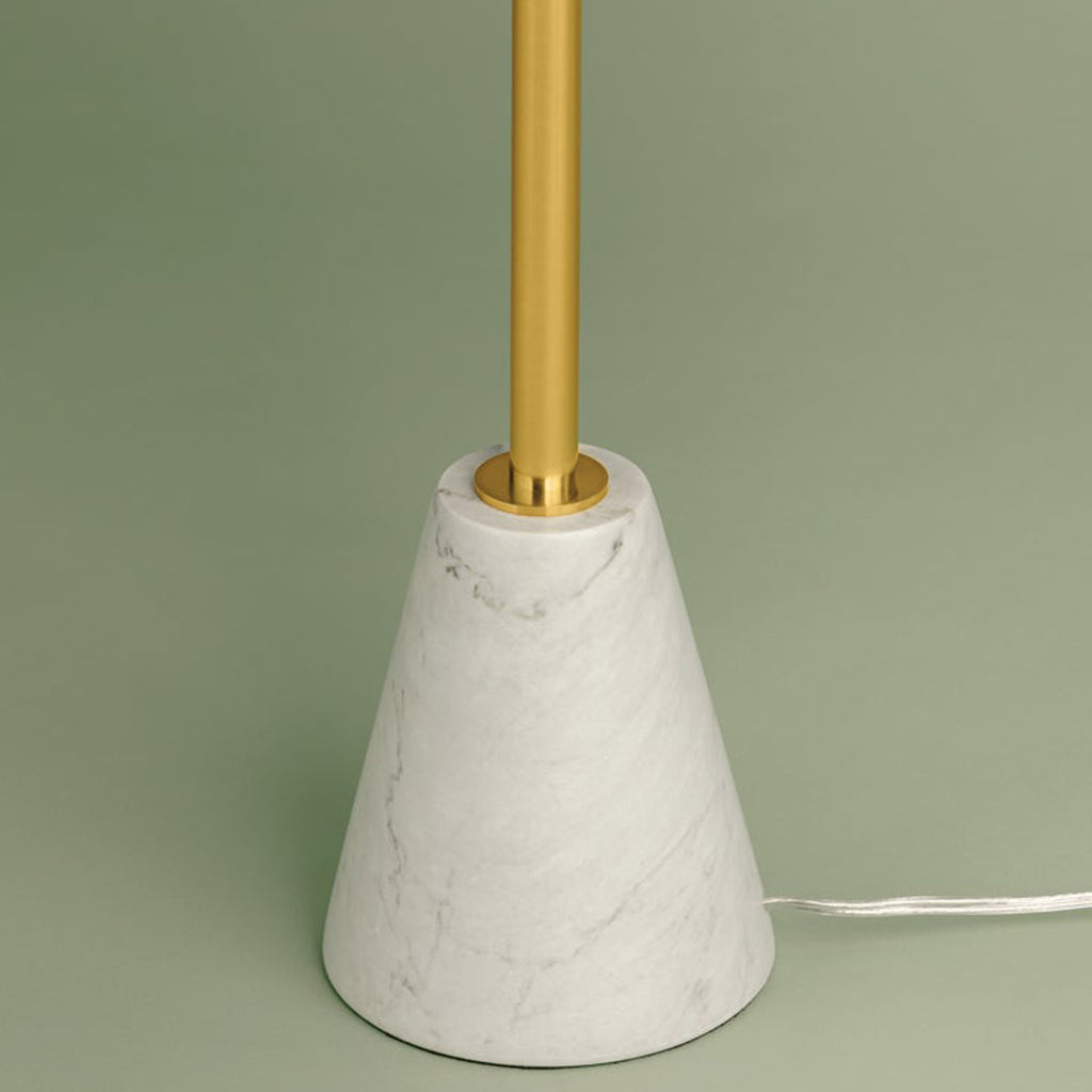 The gestural frame of the Bianca floor lamp brings instant drama to a space. Thoughtfully balanced, the striking honed Carrara marble base lends a sense of permanence, while a dangling linen shade adds lightness. Artful and timeless, Bianca seems to dance when lit.