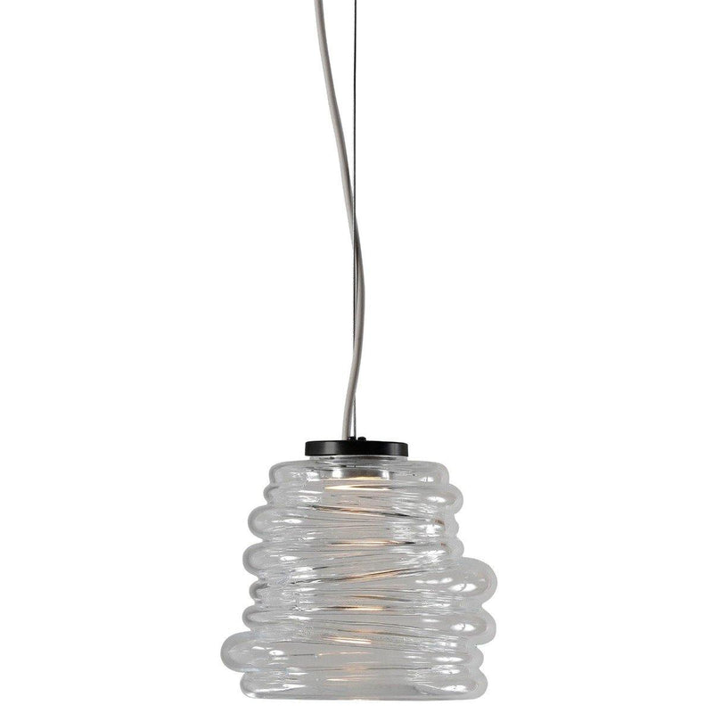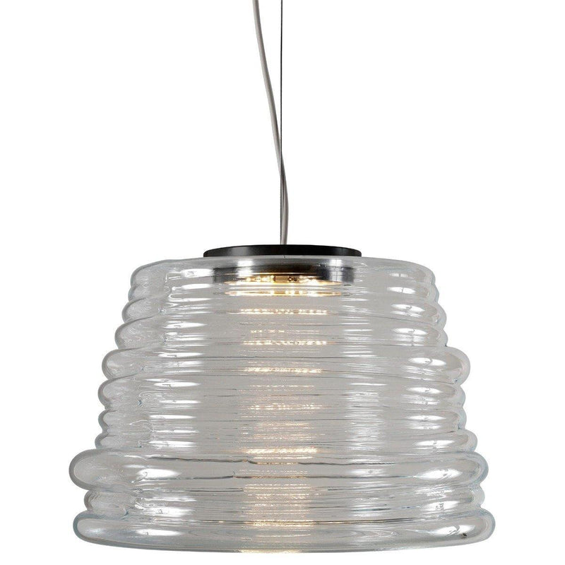 Bibendum Suspension Light by Karman is a handcrafted masterpiece made from blown glass which has an amusing and yet pleasing shape. This suspension light is ideal to be installed in bedrooms, living room, dining room and more. It is suspended on a thin cable and is an energy efficient LED, E12 and E26 light sources. This product is also available in a transparent and smooth white frosted finish with small, medium and large sizes.