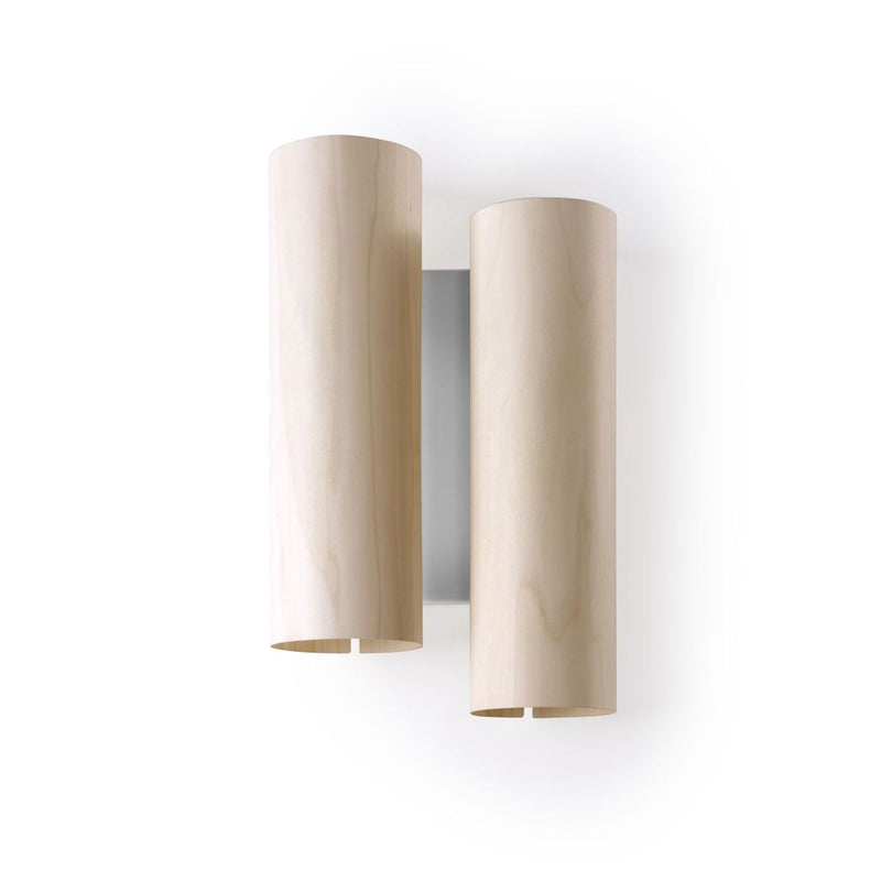 Add soft glow in the hallways or entrances by installing the Black Note Duplet LED Wall Sconce. Showcasing a unique arrangement of two perpendicular cylinder-like natural timber veneer frames, this LED wall sconce has a brilliant design. The metallic frame at the back is available in various finish options like matt ivory, matt black, black nickel, gold and copper. Meticulously crafted, this LED wall sconce boasts a perfect balance between style and aesthetics. You can select this from ivory white, natural cherry, natural beech and grey finishes