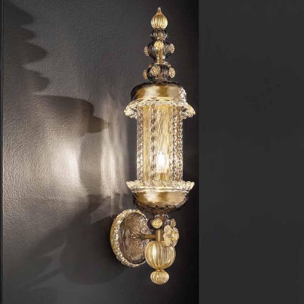 More than 10 years of valuable experience and respect for the Venetian tradition of glass production and processing, a group of outstanding experts in various fields and the highest quality are the core of the Sylcom brand. The combination of such unique light perception with technology and craftsmanship has contributed to Sylcom’s international success. Their wide range of products includes lighting inspired by royal splendor, but also more contemporary solutions and classic elegance. Sylcom products are known for their hand-blown glass and unique compositions.Enhance the grandiose of your living space by adding the Bucintoro Wall Light. Showcasing a spectacular design with unique finish, detail, and contour, this gorgeous wall light exudes grace and charm. This wall light is crafted using more than four-hundred glass components for an extraordinary appeal. Available in elegant silver bronzing and gold bronzing finish options, this wall light is available in various color choices including clear, milk white clear, clear and 24kt gold, smoked and 24kt gold, amethyst and 24kt gold, and ivory and gold. You can choose to get this wall light in small and large sizes.