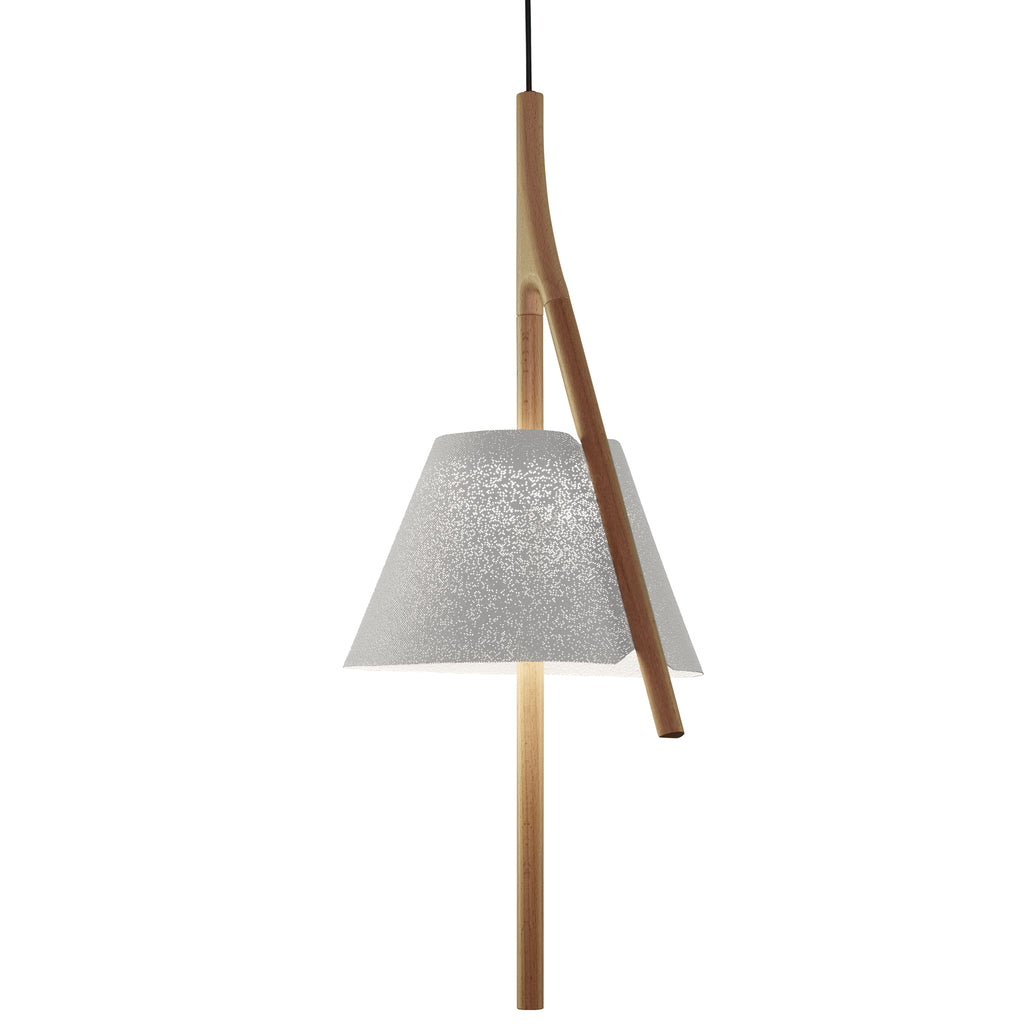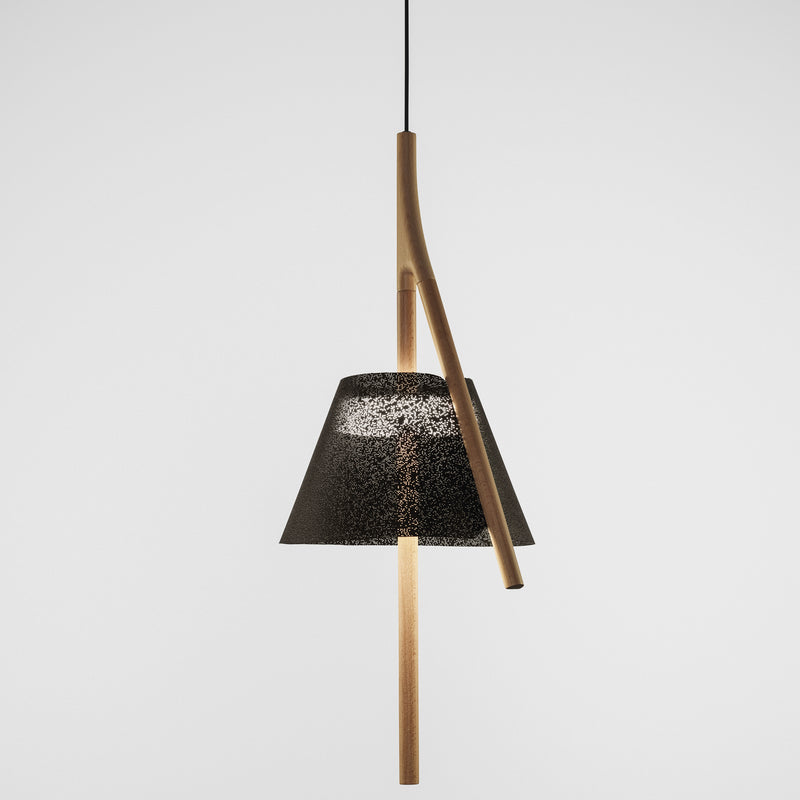 Cambo is the new design lamp resulting from the collaboration with the cenlitrosmetrocadrado studio. The word Cambo (of Galician origin) refers to a wooden piece with a hook at one end, a handcrafted element present in the Galician tradition. With nature and our environment as inspiration, cenlitrosmetrocadrado has designed the Cambo system based on the natural growth of plants, the branching and bifurcation of trees. Ricardo Tubío and Xabier Rilo’s vision of the natural environment has given rise to a modular system that allows different designs to be configured with the same elements. Cambo is made of a beech wood structure with a water-based varnish that allows the material to be shown in its most natural form. With this peculiar structure, the painted stainless steel mesh is introduced into the lampshade which houses the integrated LED light source.