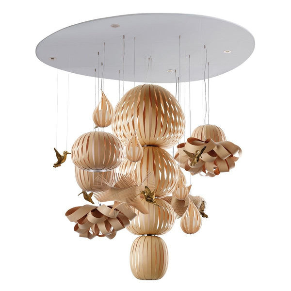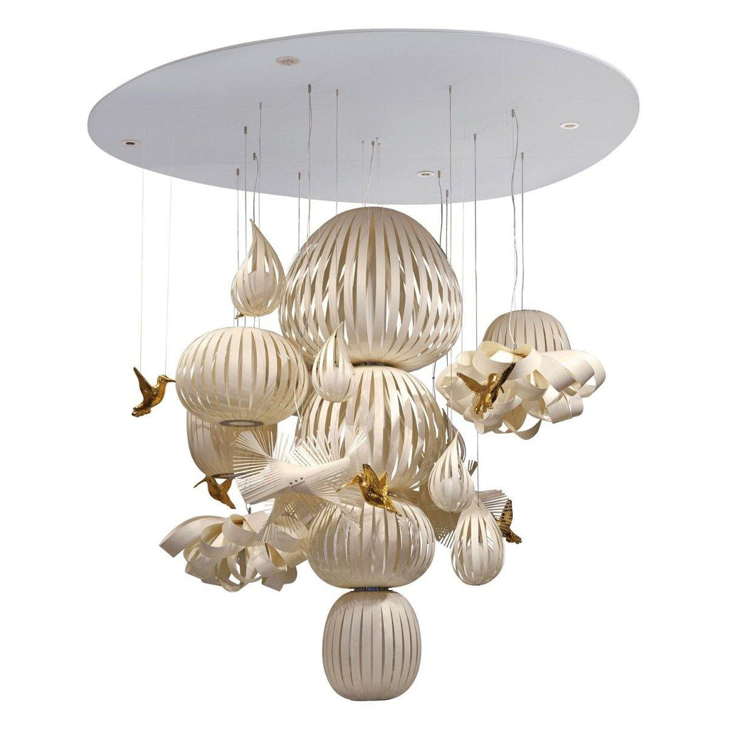 For years, the Spanish company LZF has been creating unique, conscious products that are not only beautiful and functional, but also eco-friendly and packaged in an environmentally safe and biodegradable way. LZF Lamps brand experiments not only with interesting materials such as wood veeners, but also with structures and shapes, thus providing extremely interesting collections of unique lamps with a wooden finish. Here you can find both ceiling, floor and table lamps and much more.Skillfully crafted with an intricate pattern, the Candelabro Small Chandelier by LZF Lamps has an exceptional design. This small-sized chandelier creates a gleaming visual effect in the interiors. It has a unique blend of various patterns of lights like teardrop, circular and twisted. Beautifully adorned with ceramic bird motifs in a contrasting finish, this chandelier is an instant attention grabber. It is crafted using the best quality of wood canopy. This chandelier can be a striking addition in the living rooms and dining rooms. Both beech and ivory white wood finish look elegant.