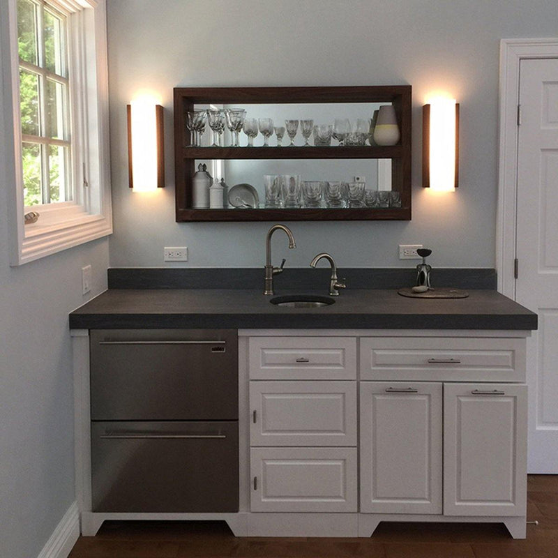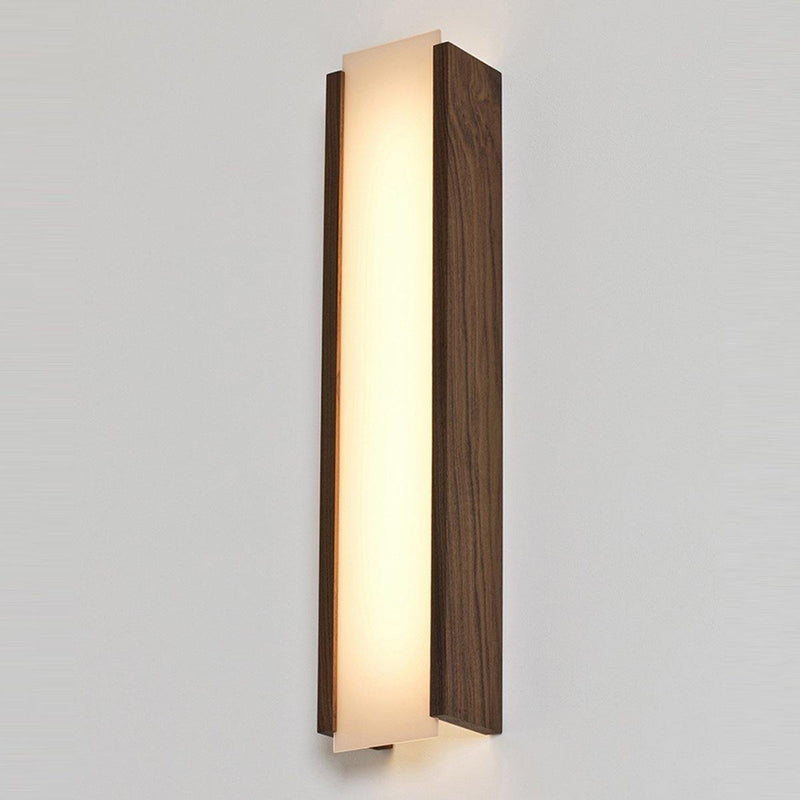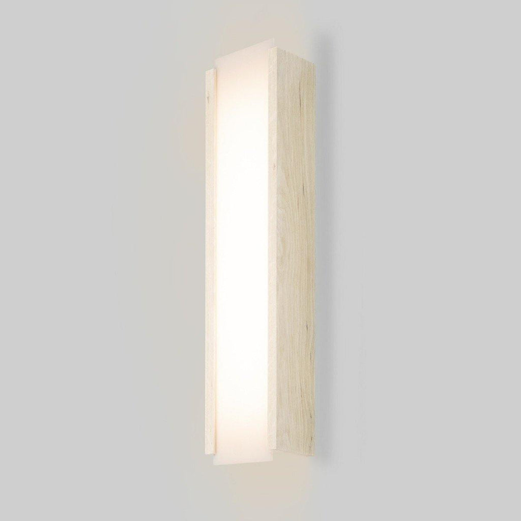 The Capio LED Wall Sconce by Cerno is a discerning lamp with a simple design, composing two linear sides holding a diffusing glass in the middle. This sculpture is available in four refining finishes, adding to its classic wooden beauty. Available finishes are dark stained walnut, white washed oak, maple, and walnut. It casts gentle light through a LED light source and creates a tranquil environment ideal for modern apartments, residencies, resorts, guesthouses, and hotels. Integrating advanced technology inside its discerning style, this wall fixture allows dimming of the light for an intimate and soft atmosphere.