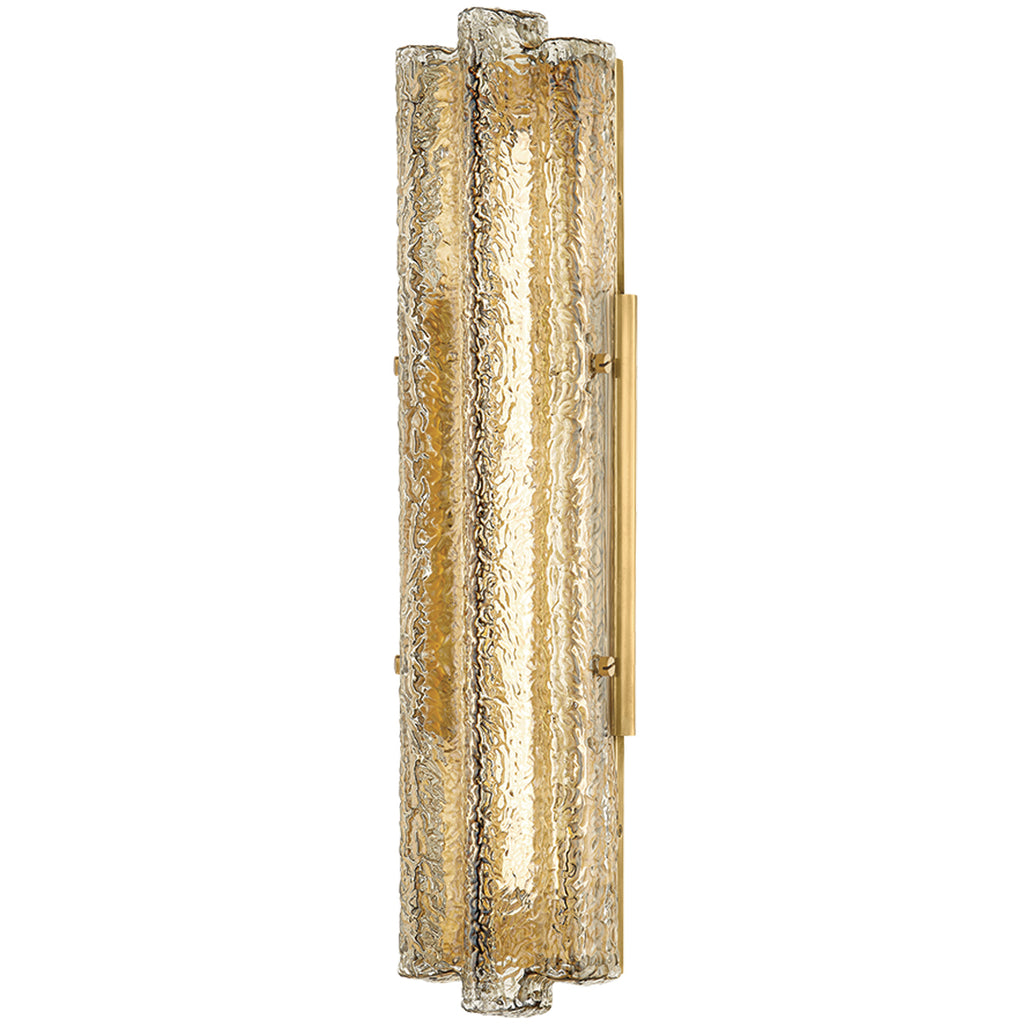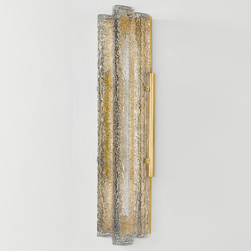 Named after a semi-precious stone, this sconce mesmerizes with its cluster of icy glass forms. Reflecting off the Vintage Brass metalwork, the handblown, dark champagne piastre glass exhibits both a warm and cool vibrancy. Whether illuminated or not, Carnelian makes a dazzling statement in bathrooms, bedrooms, or any space in need of a distinctive light.