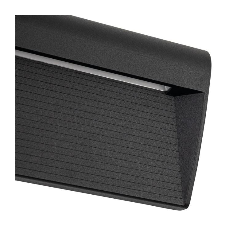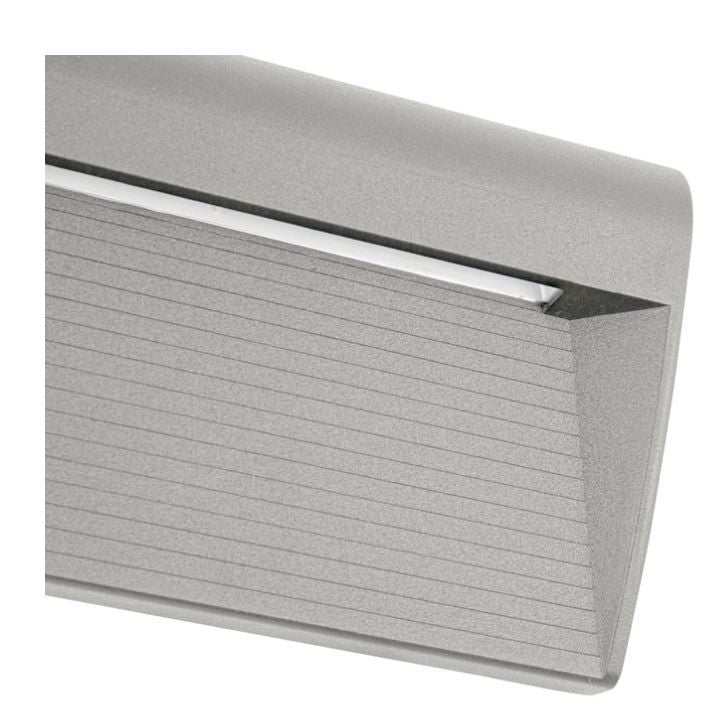 This family of exterior wall-mounted fixtures is available in a variety of geometric forms: circle, square, and two different rectilinear configurations. Light is directed downward from a recess, and the incline allows the glow to radiate gradually. Vanishingly thin and ideal for egress, courtesy, and grace lighting. Optional stone inlays offer additional opportunities for customizing to complement different wall surfaces